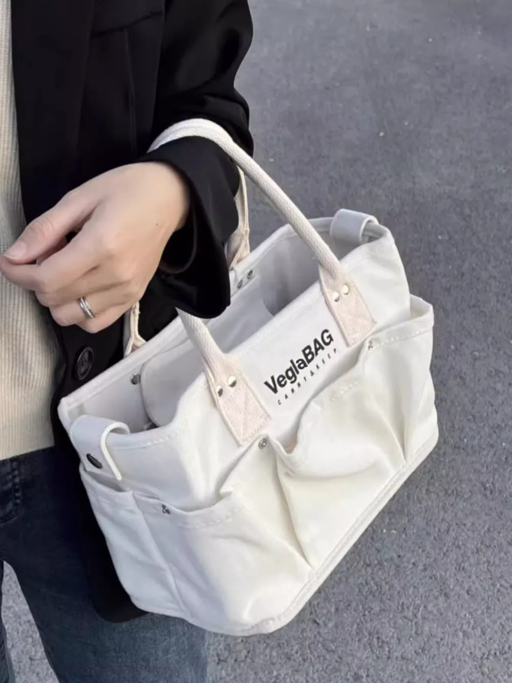 Multi Pockets Canvas Handbag