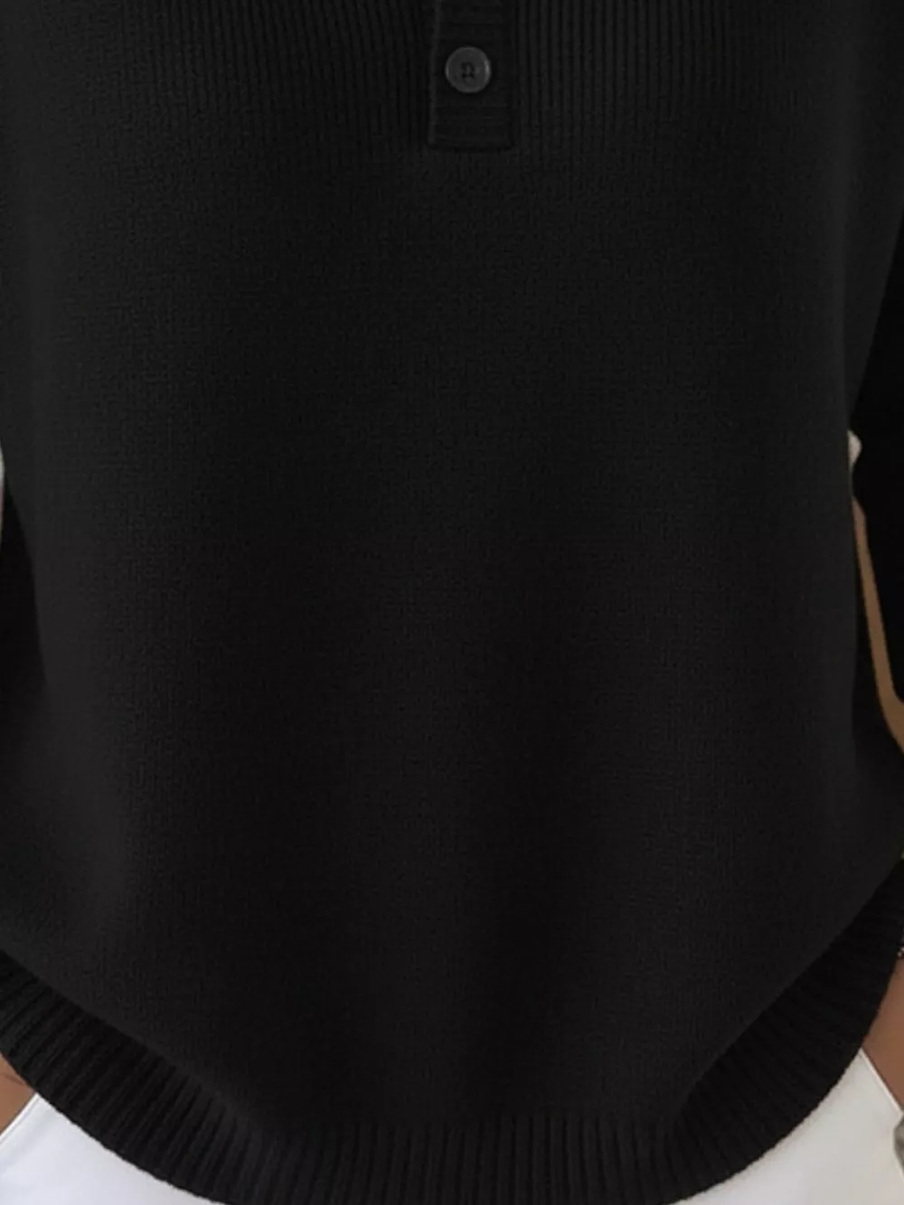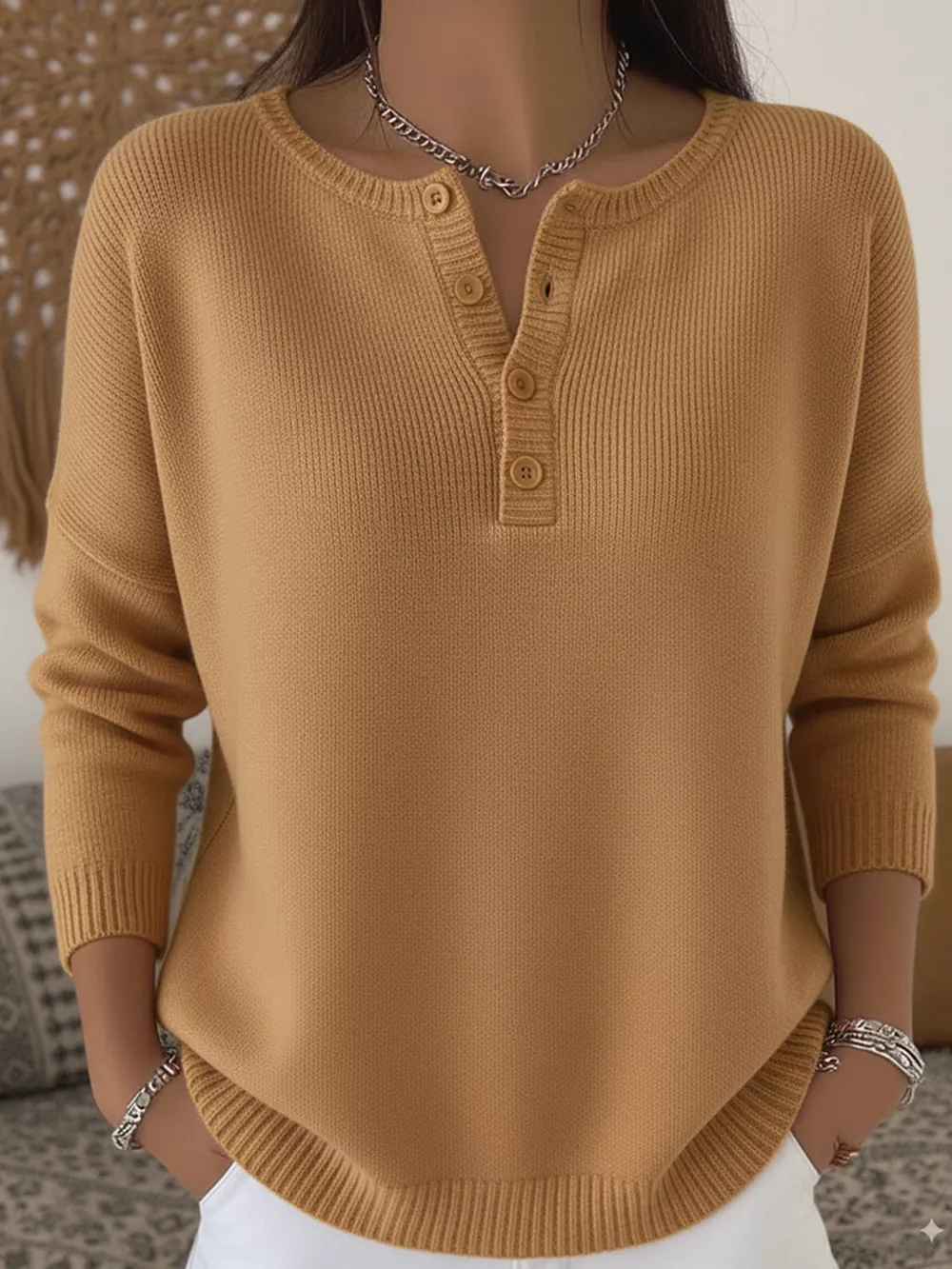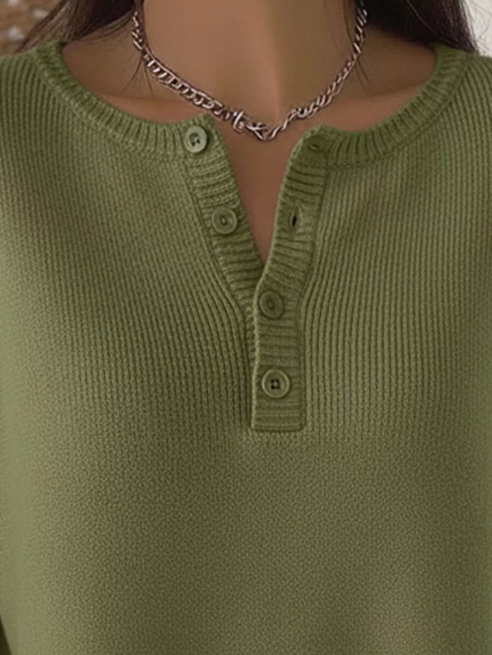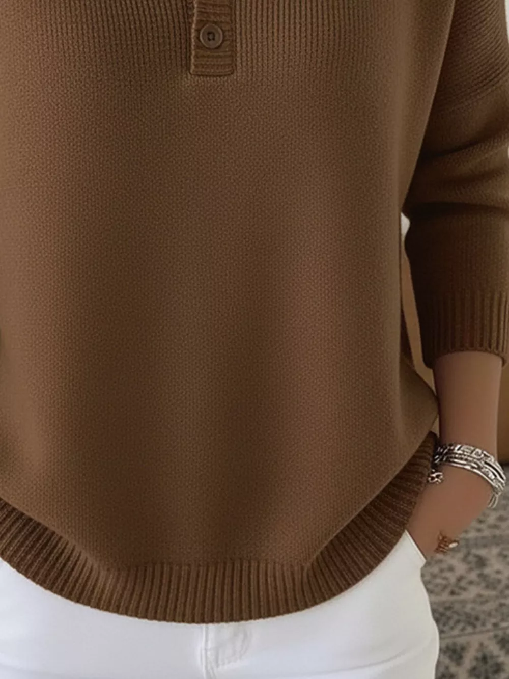 Full Size Half Button Long Sleeve Knit Top Plus Size