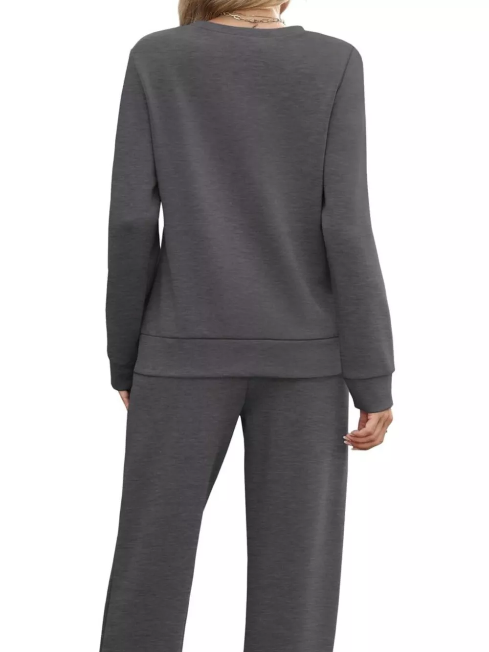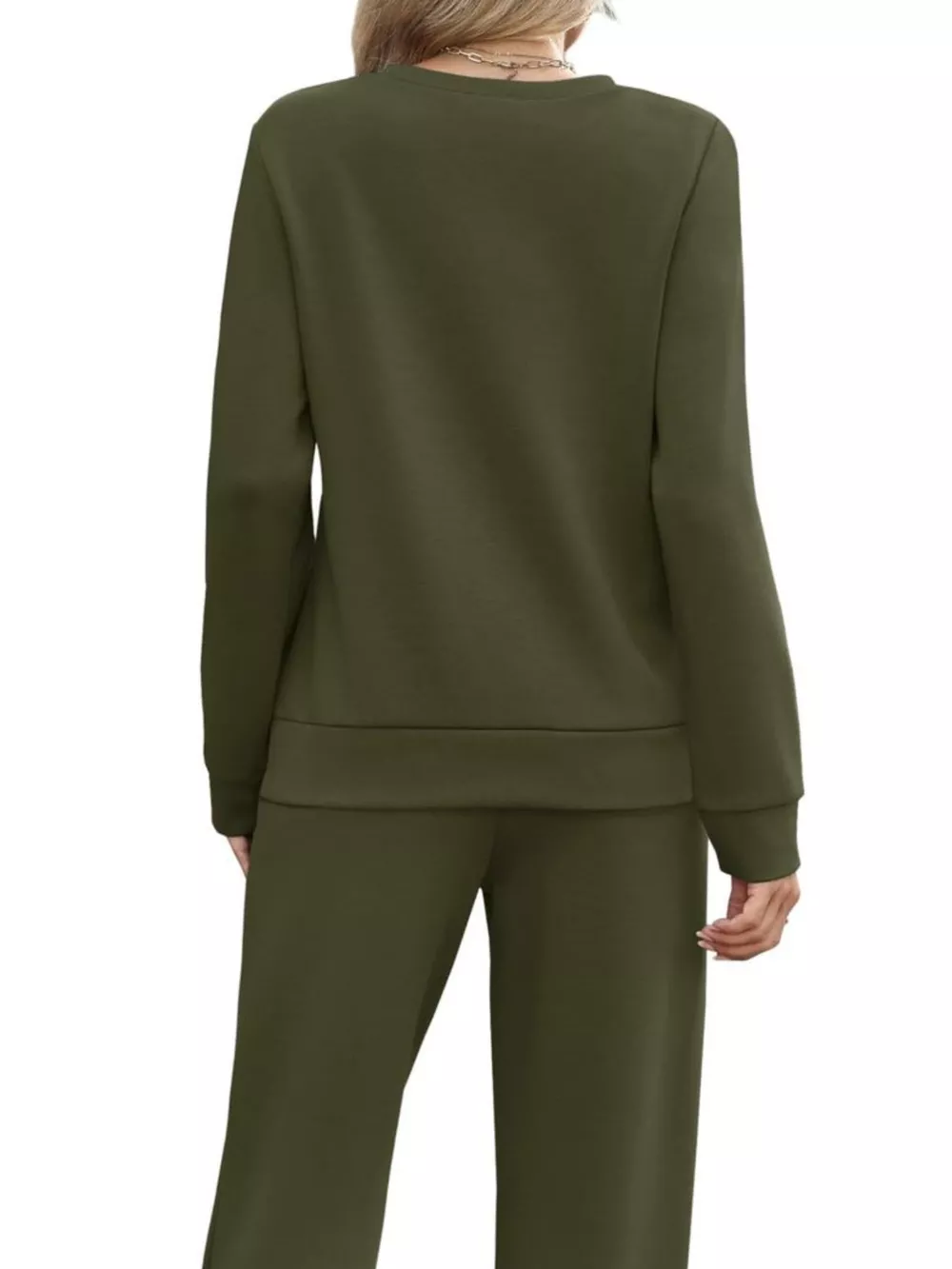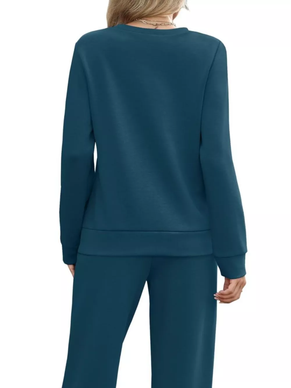 Full Size Casual Long Sleeve Top and Pants Set Plus Size