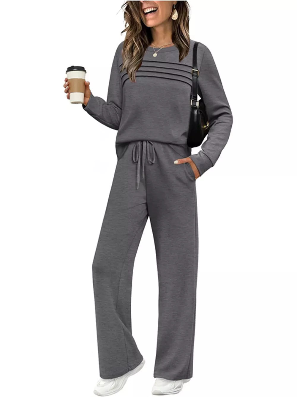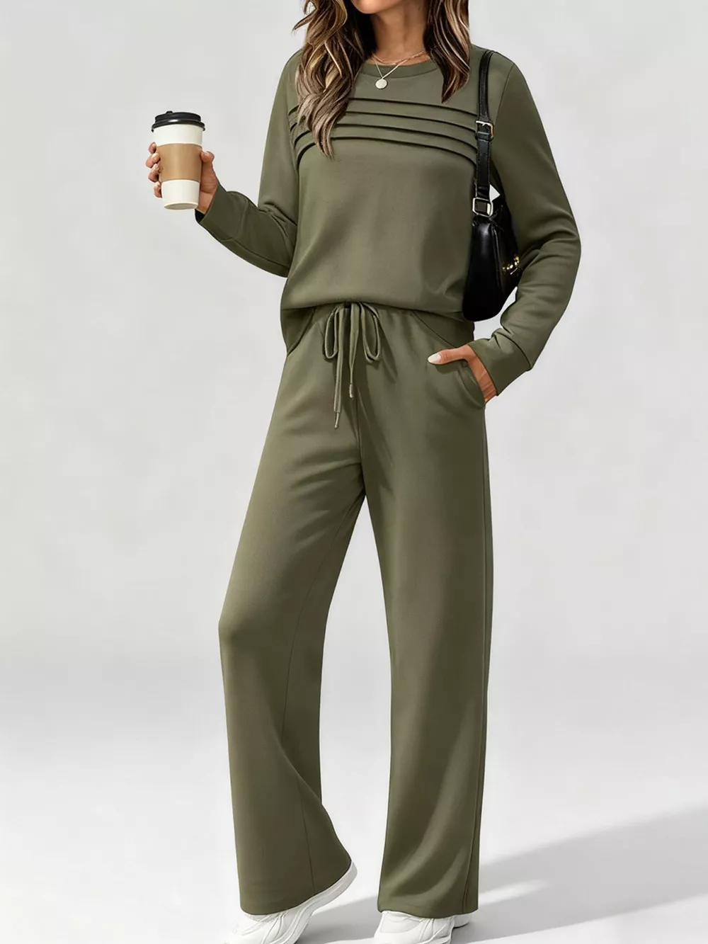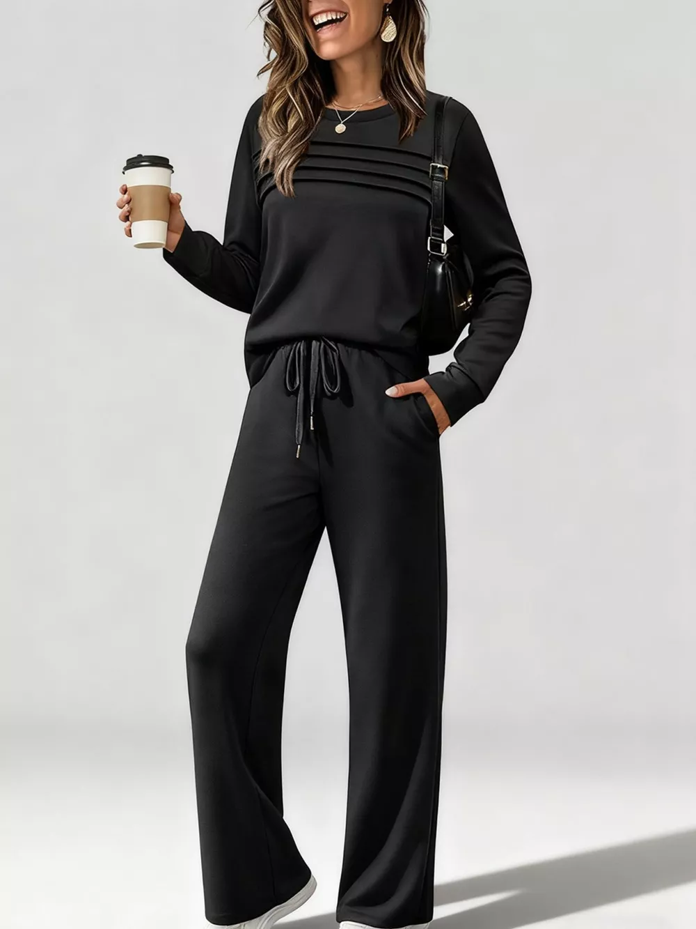Full Size Casual Long Sleeve Top and Pants Set Plus Size