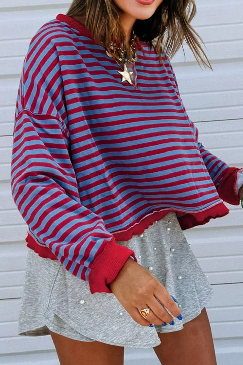 Stripe Exposed Seam Contrast Ribbed Trim Oversize Sweatshirt