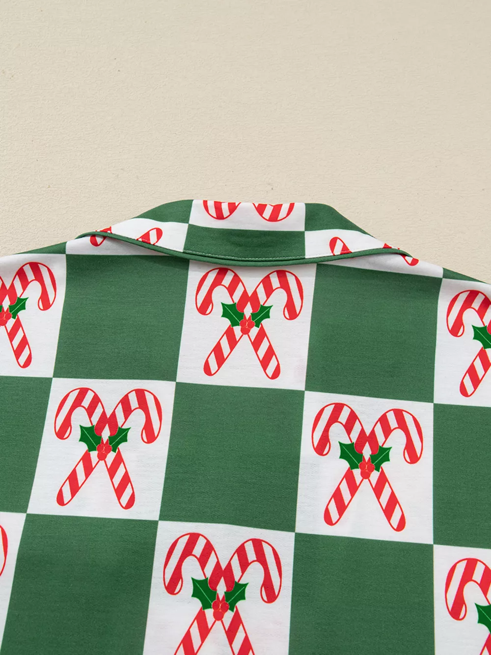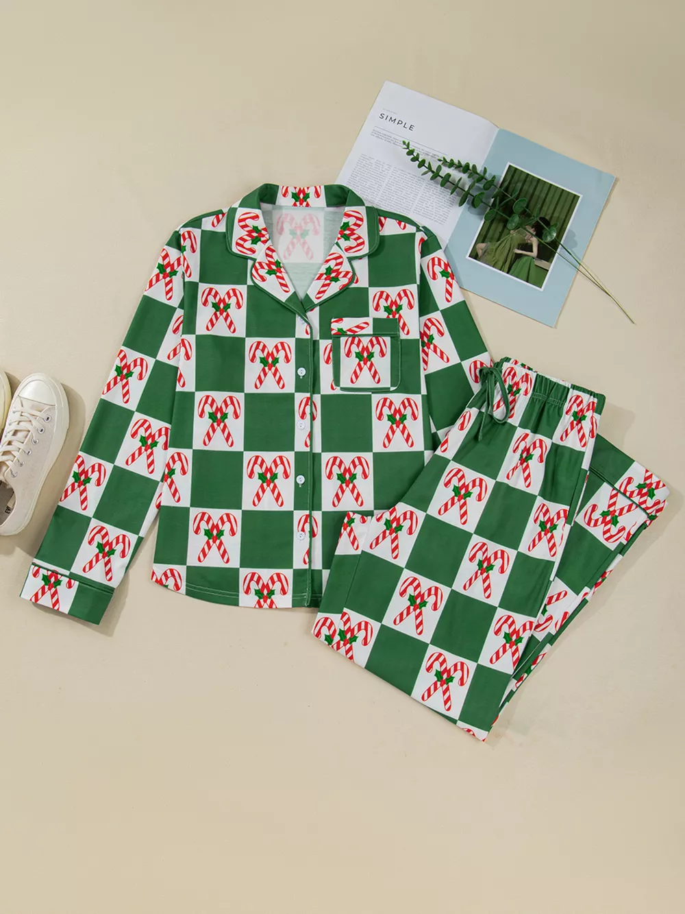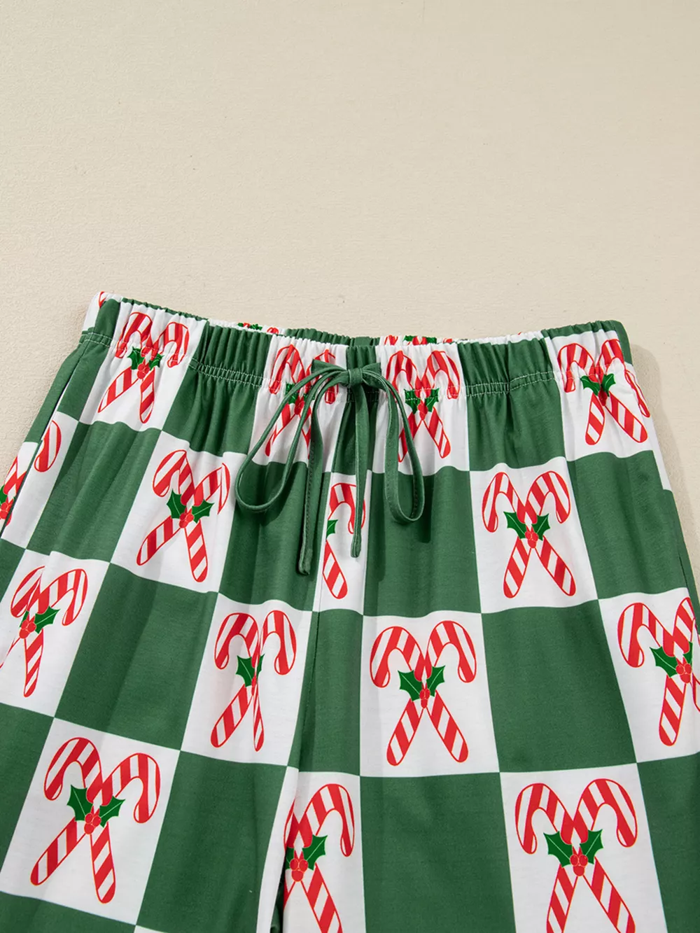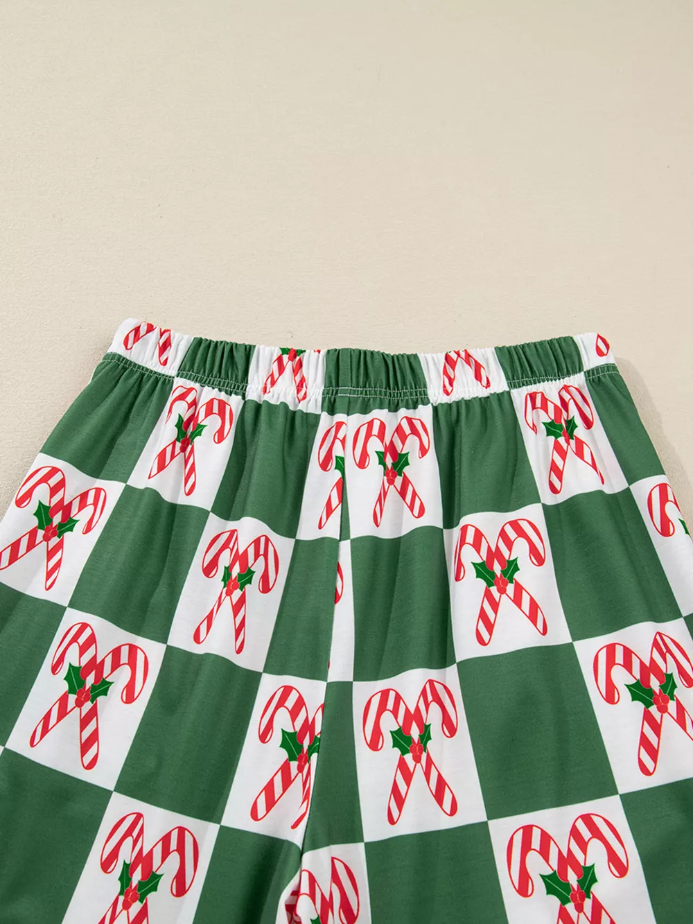 Candy Cane Checkered Pattern 2pcs Pajama Set