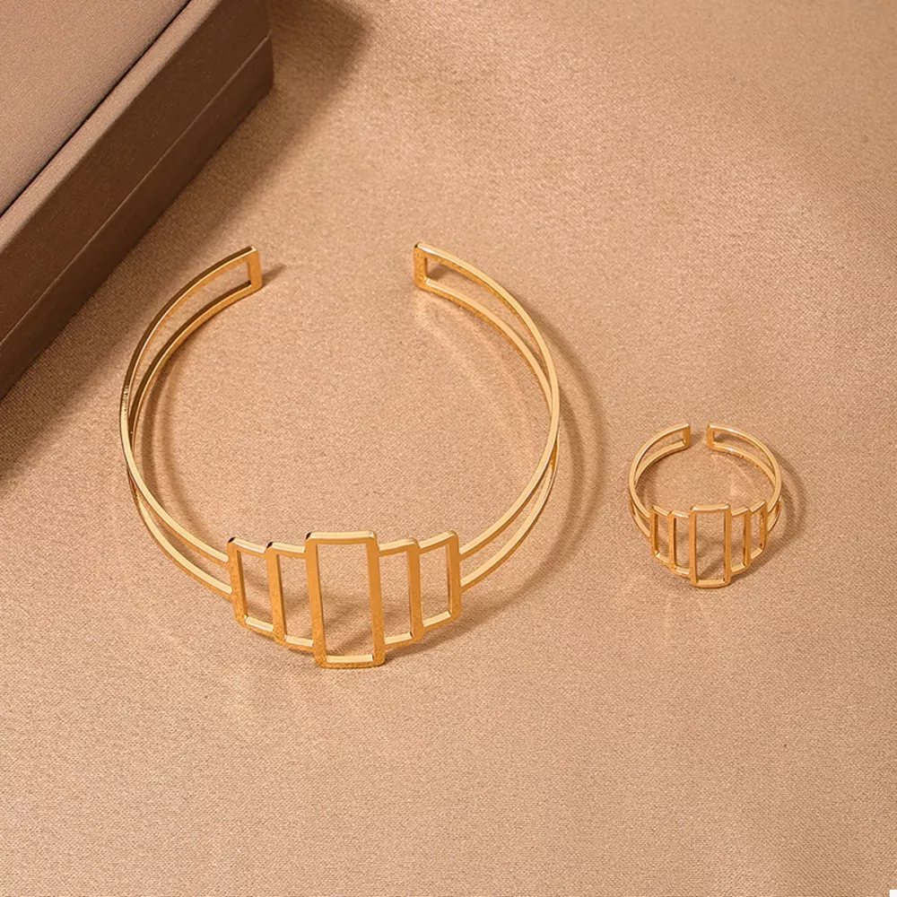 18K Gold-Plated Open Bracelet and Ring Jewelry Set