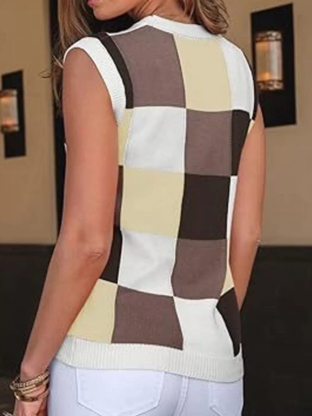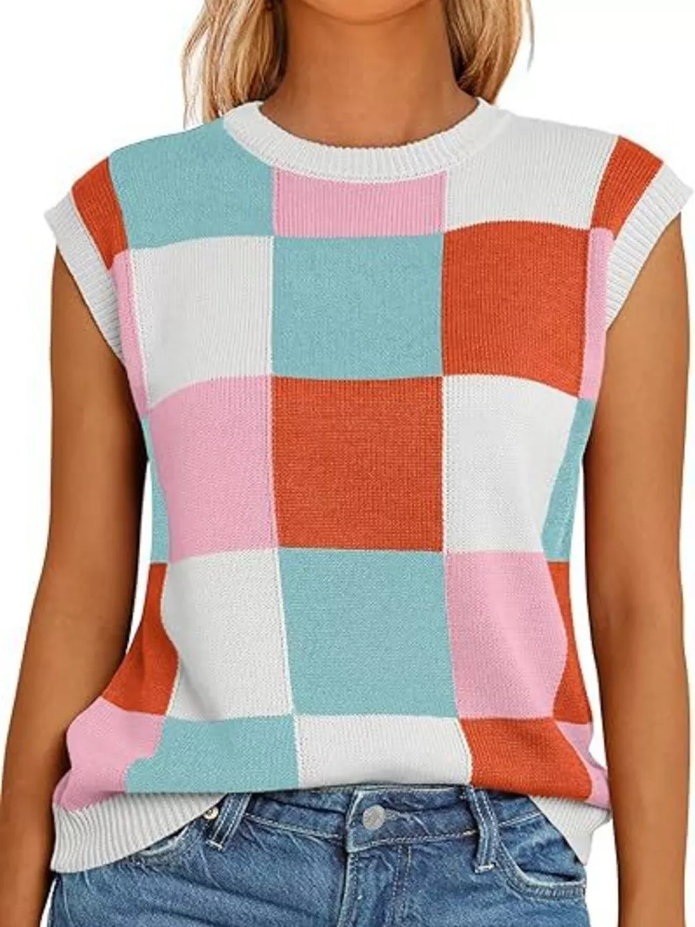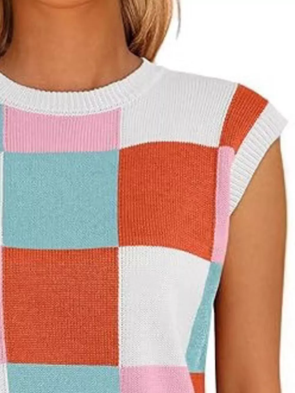 Colorful Checkered Knit Sweater Vest