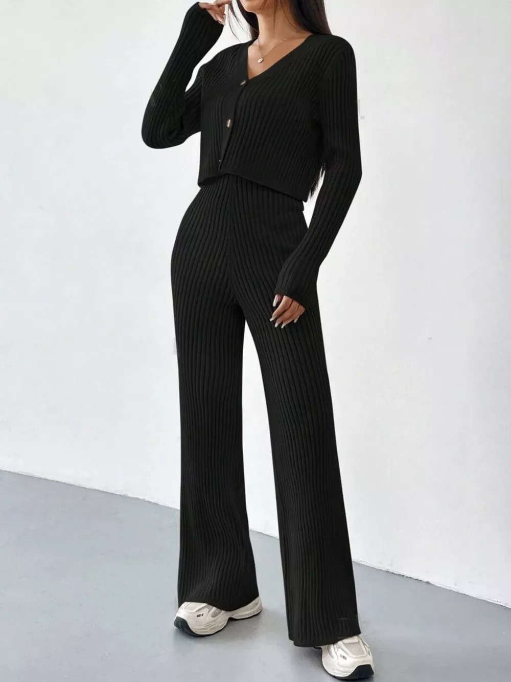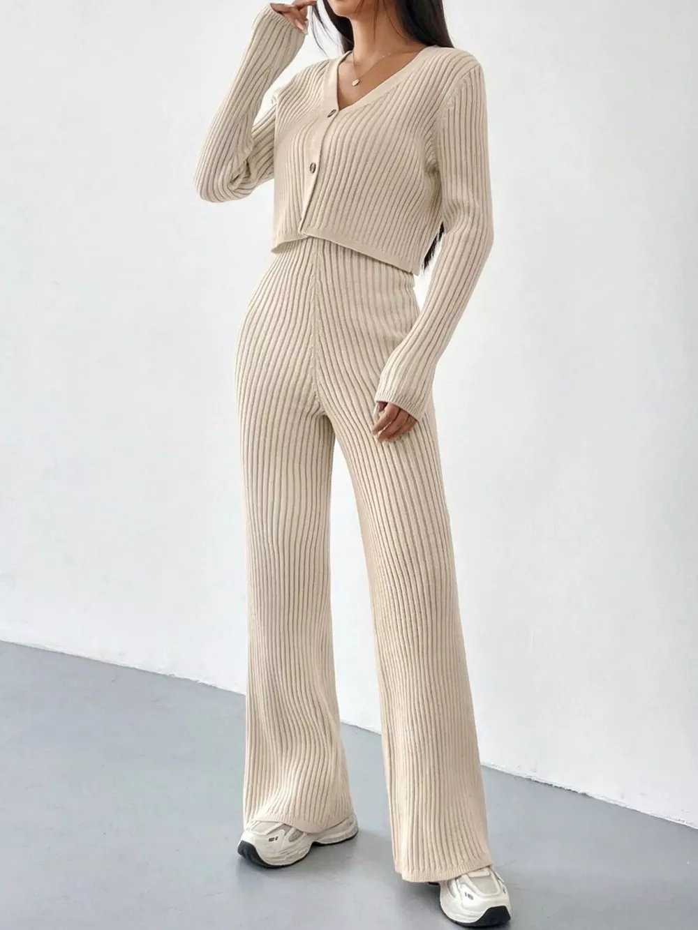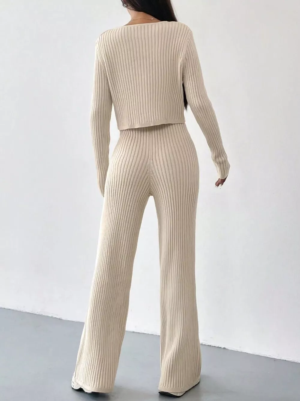 Ribbed Knit Button Up Top and Pants Set