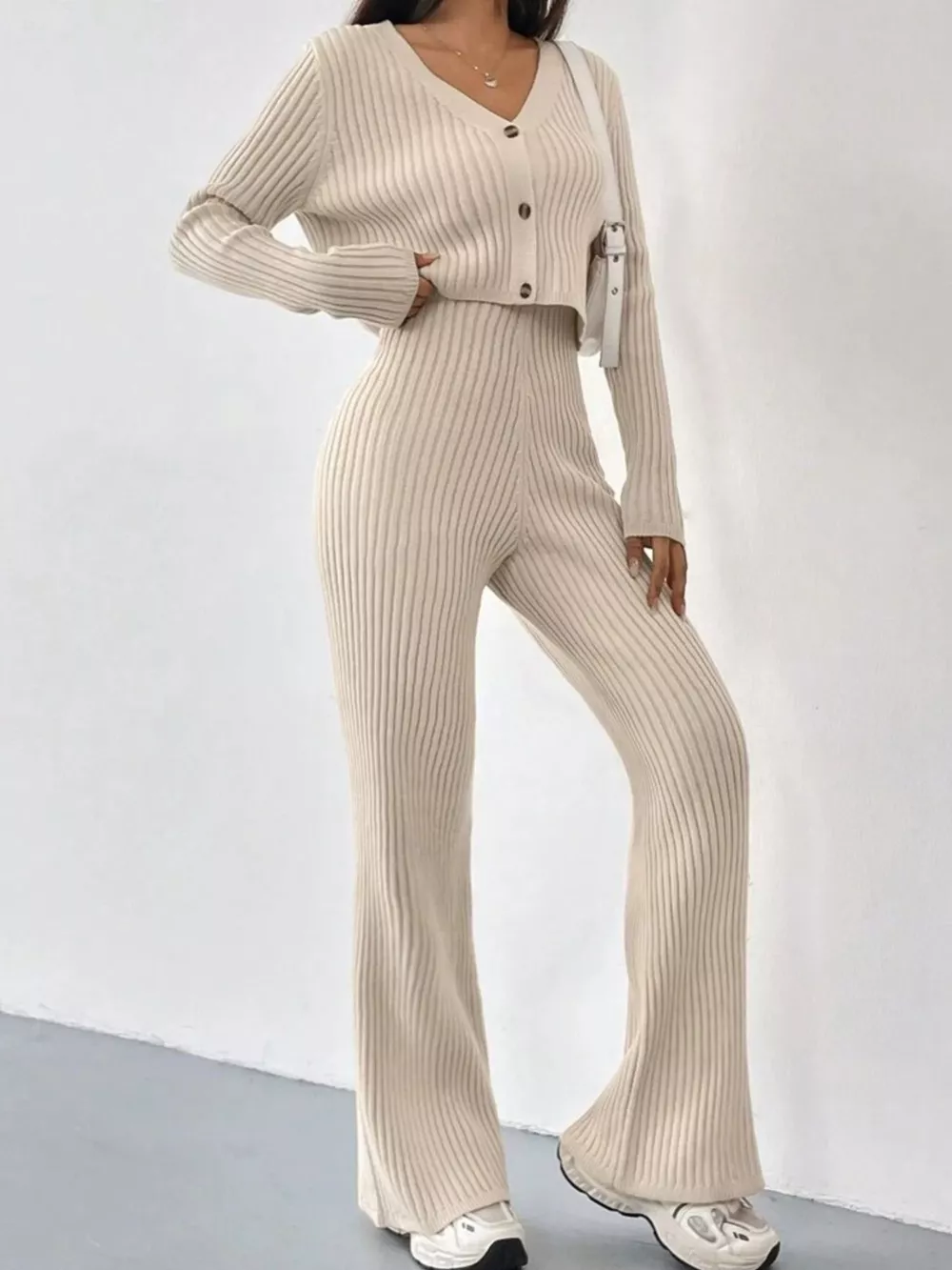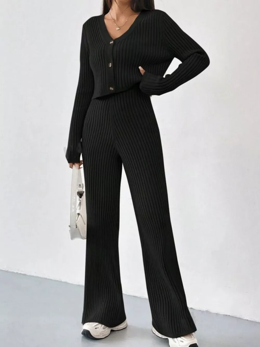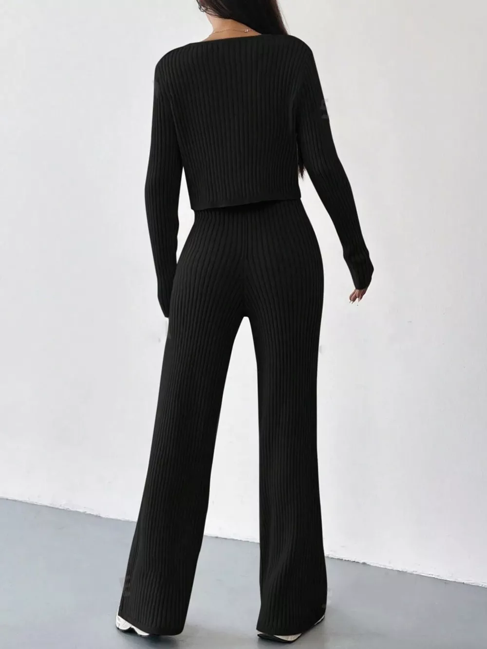 Ribbed Knit Button Up Top and Pants Set