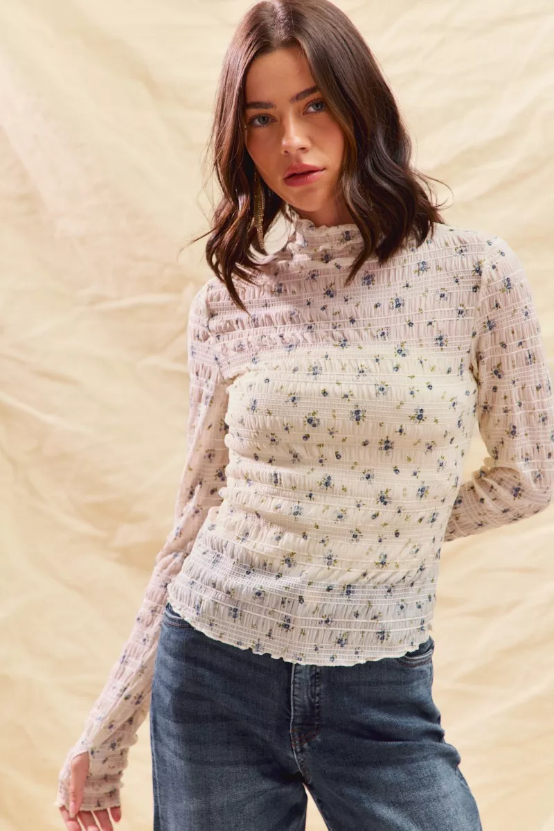 SO ME Floral Print Textured Long Sleeve Knit Top
