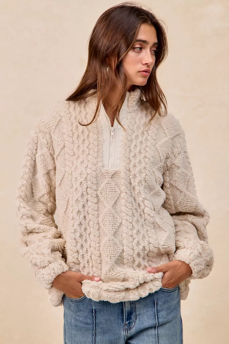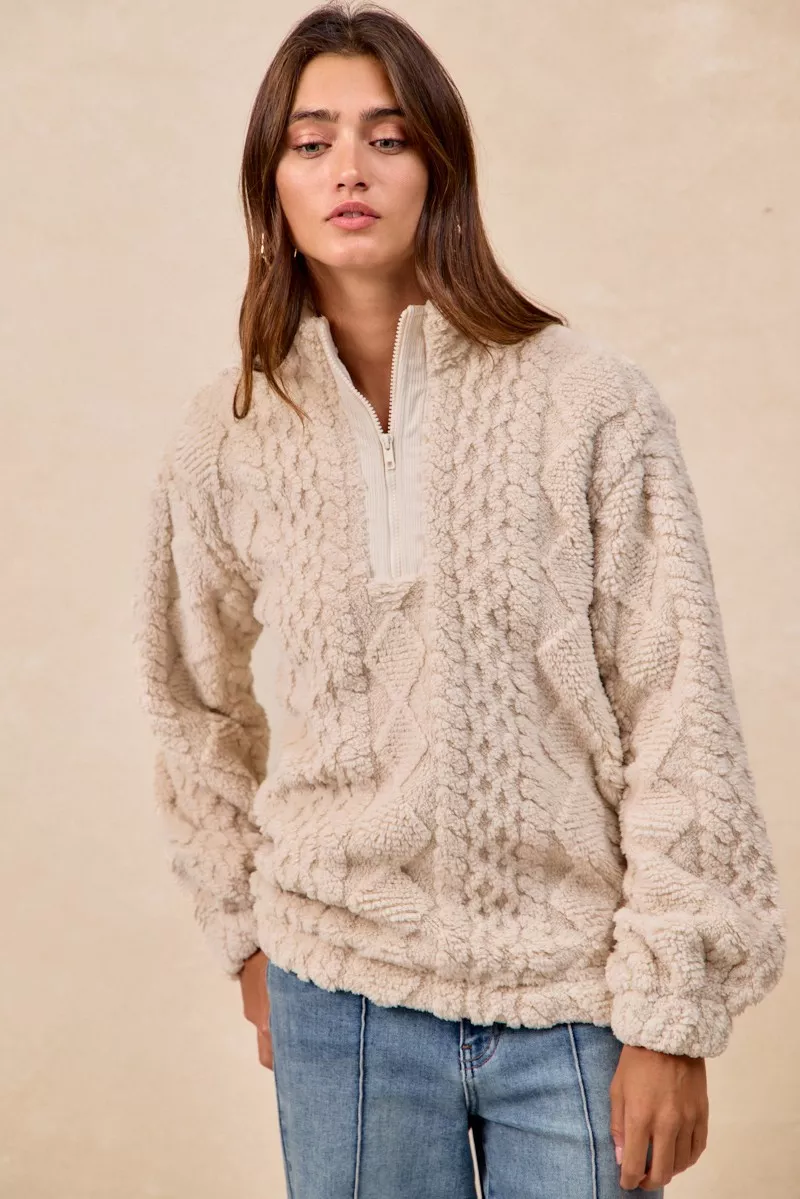 BiBi Patterned Soft Fleece Half Zip Up Top