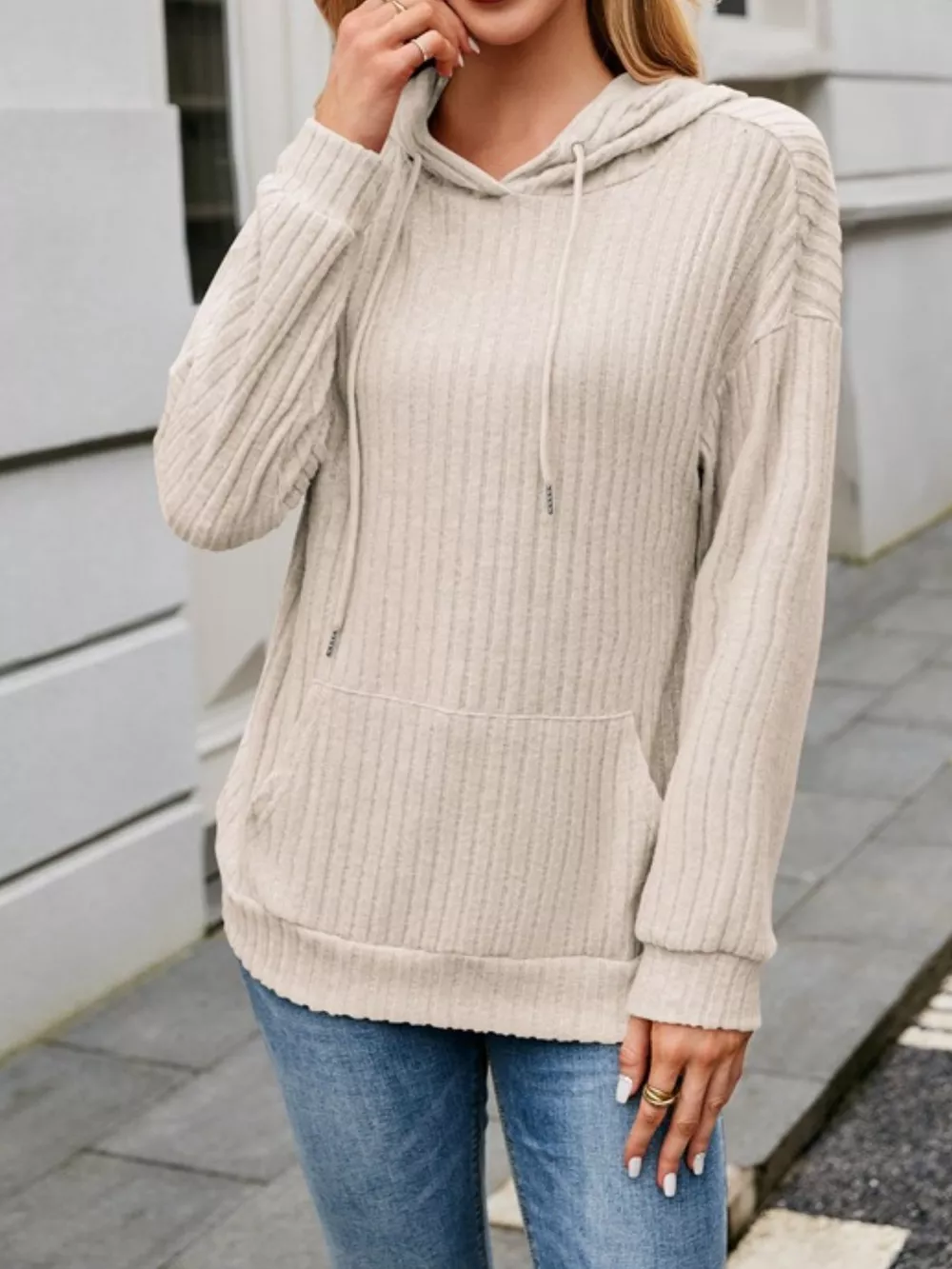 - Features:Basic style,Ribbed,Drawstring,Pocketed