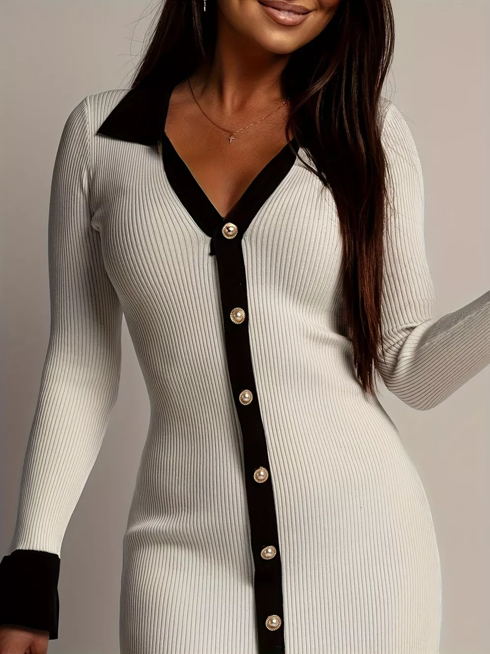 Ribbed Knit Contrast Trim Sweater Dress