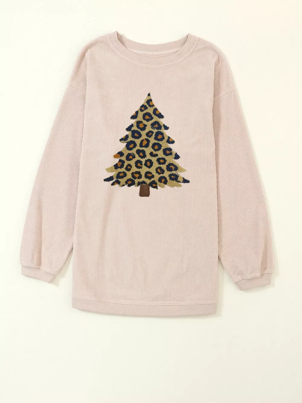 Leopard Christmas Tree Graphic Corded Sweatshirt