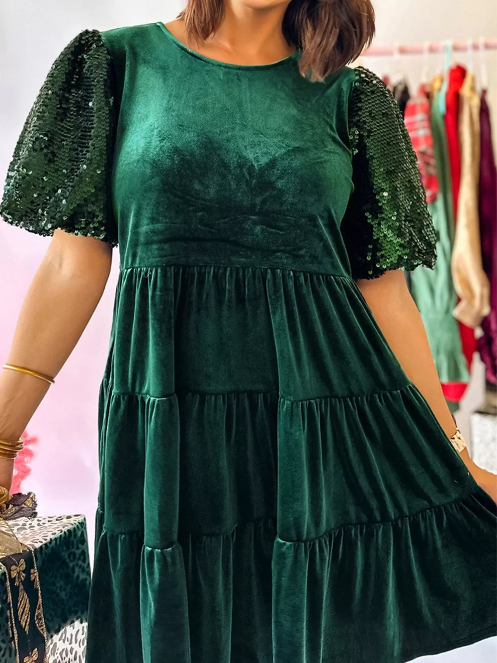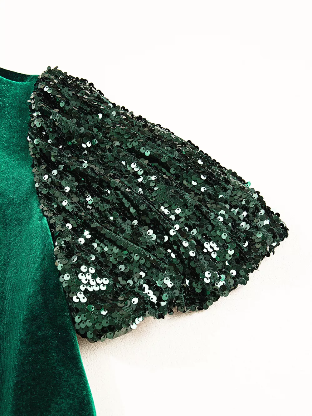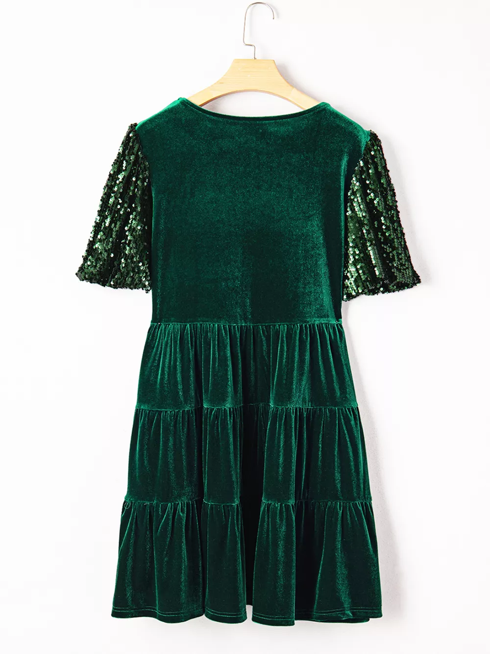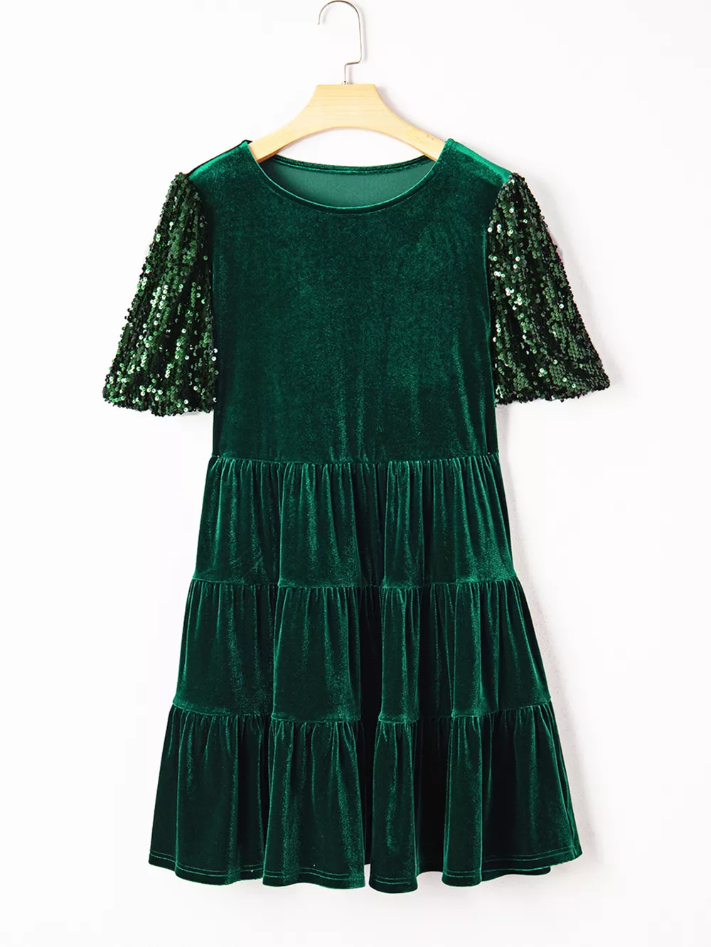 Sequin Puff Sleeve High Waist Tiered Velvet Mini Dress