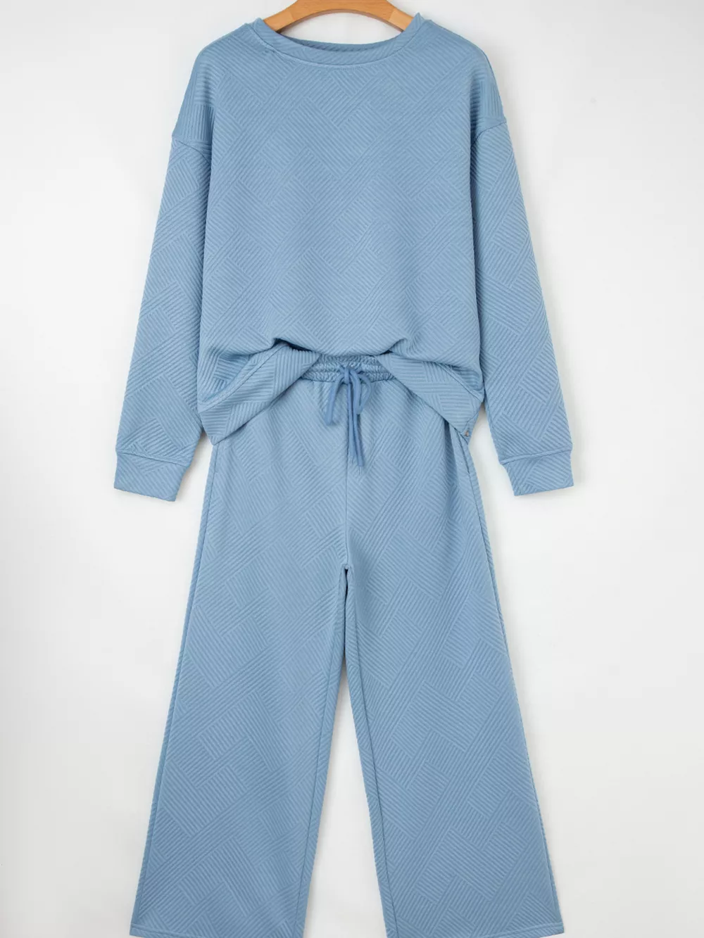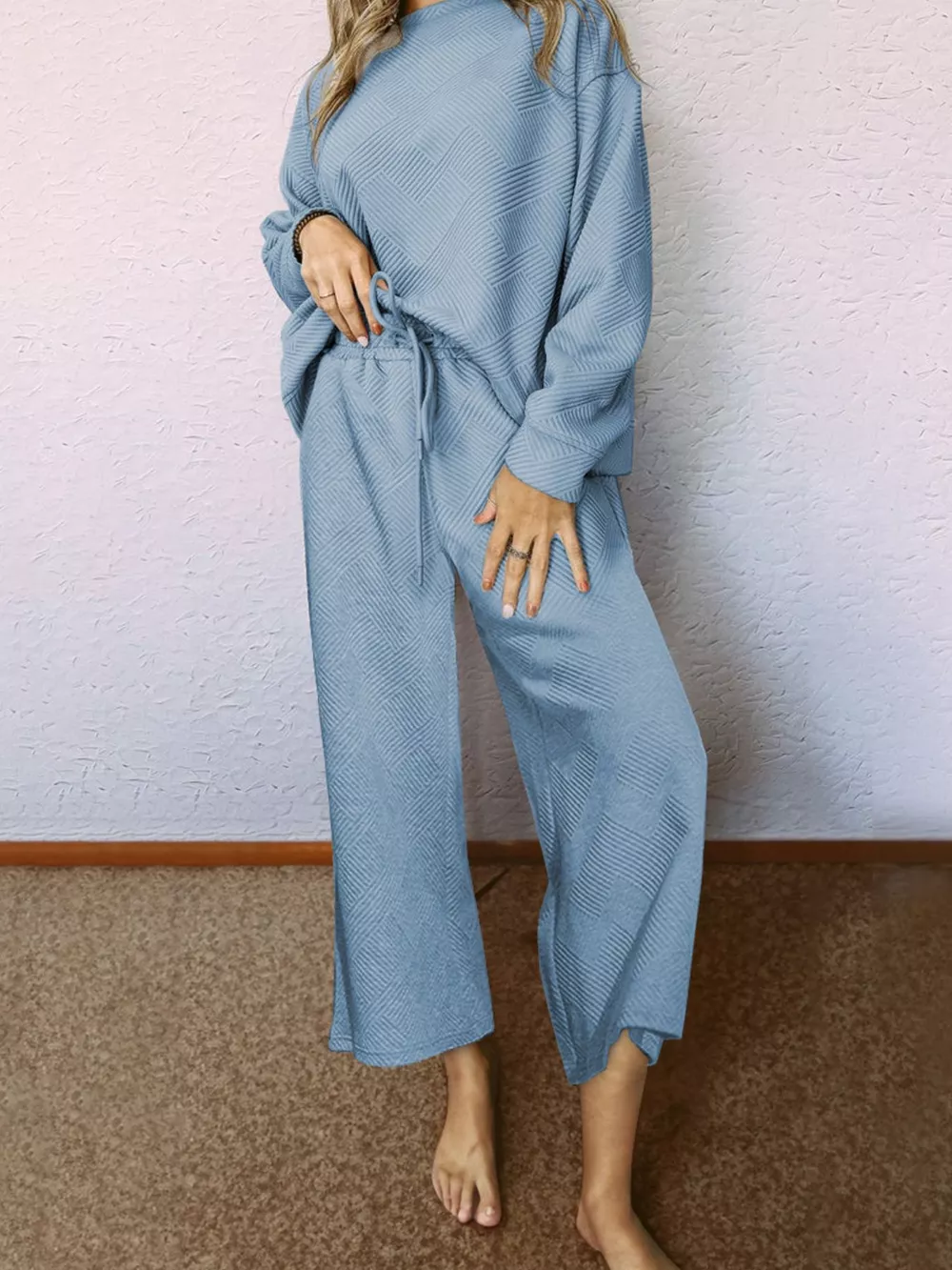 Loose Textured Top and Pants 2pcs Outfit Set