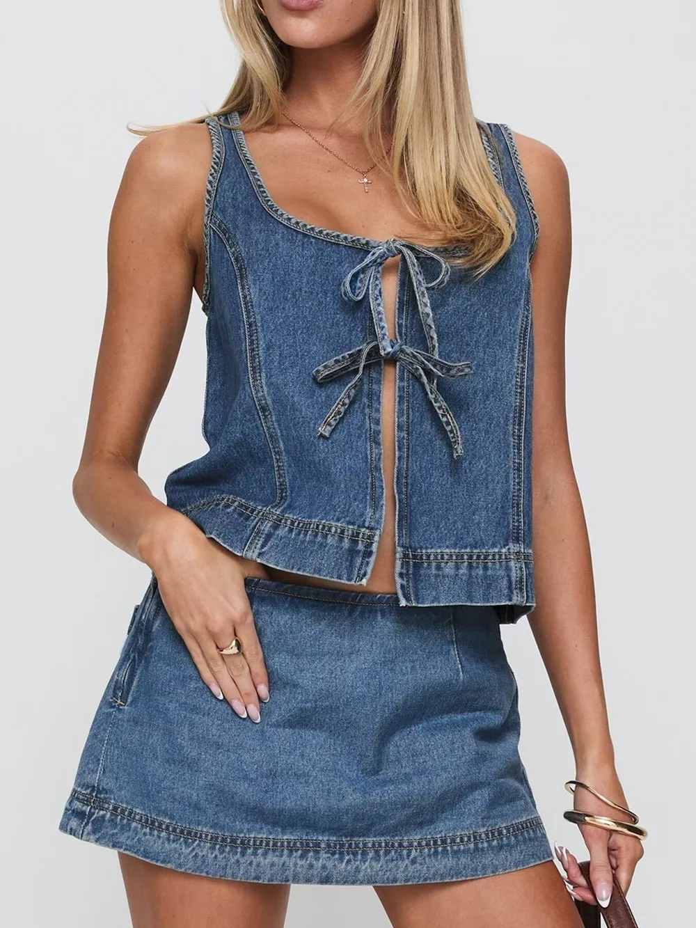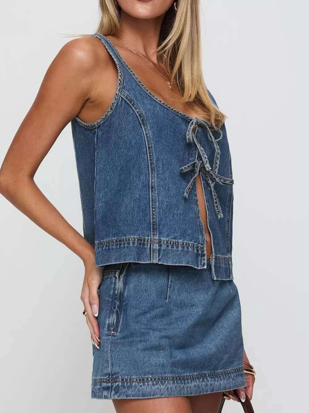 Tie-Front Tank and Skirt Denim Set
