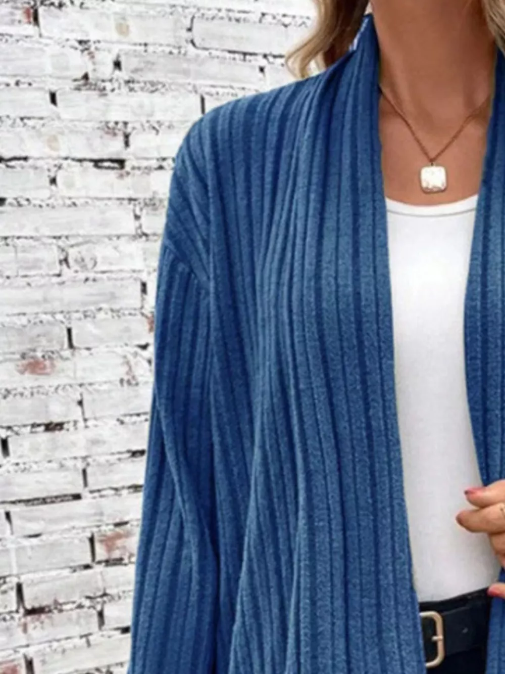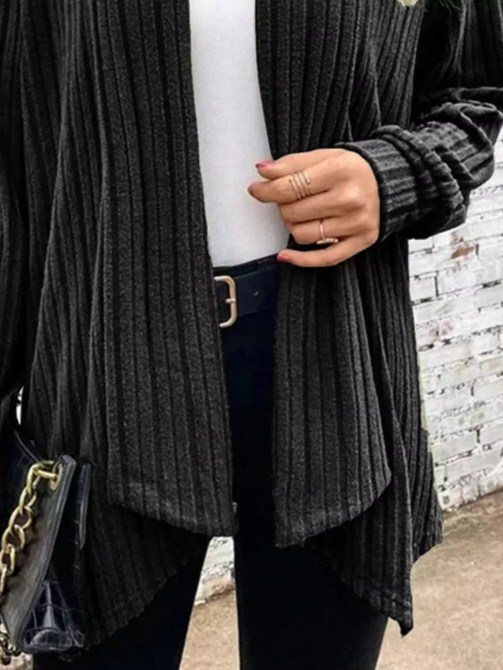 Full Size Ribbed Knit Open Front Cardigan Plus Size