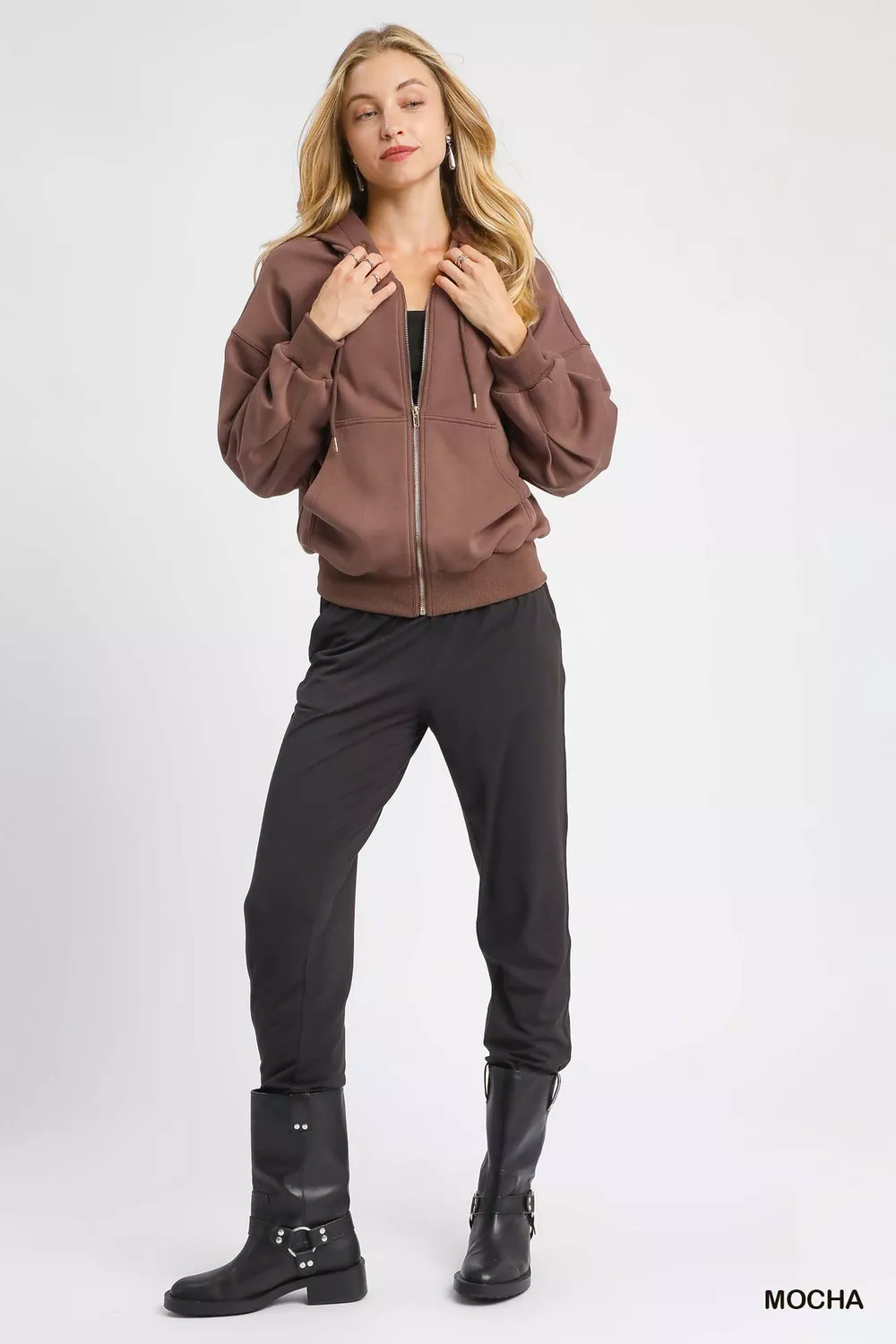 Umgee Zip-Up Fleece Hooded Jacket