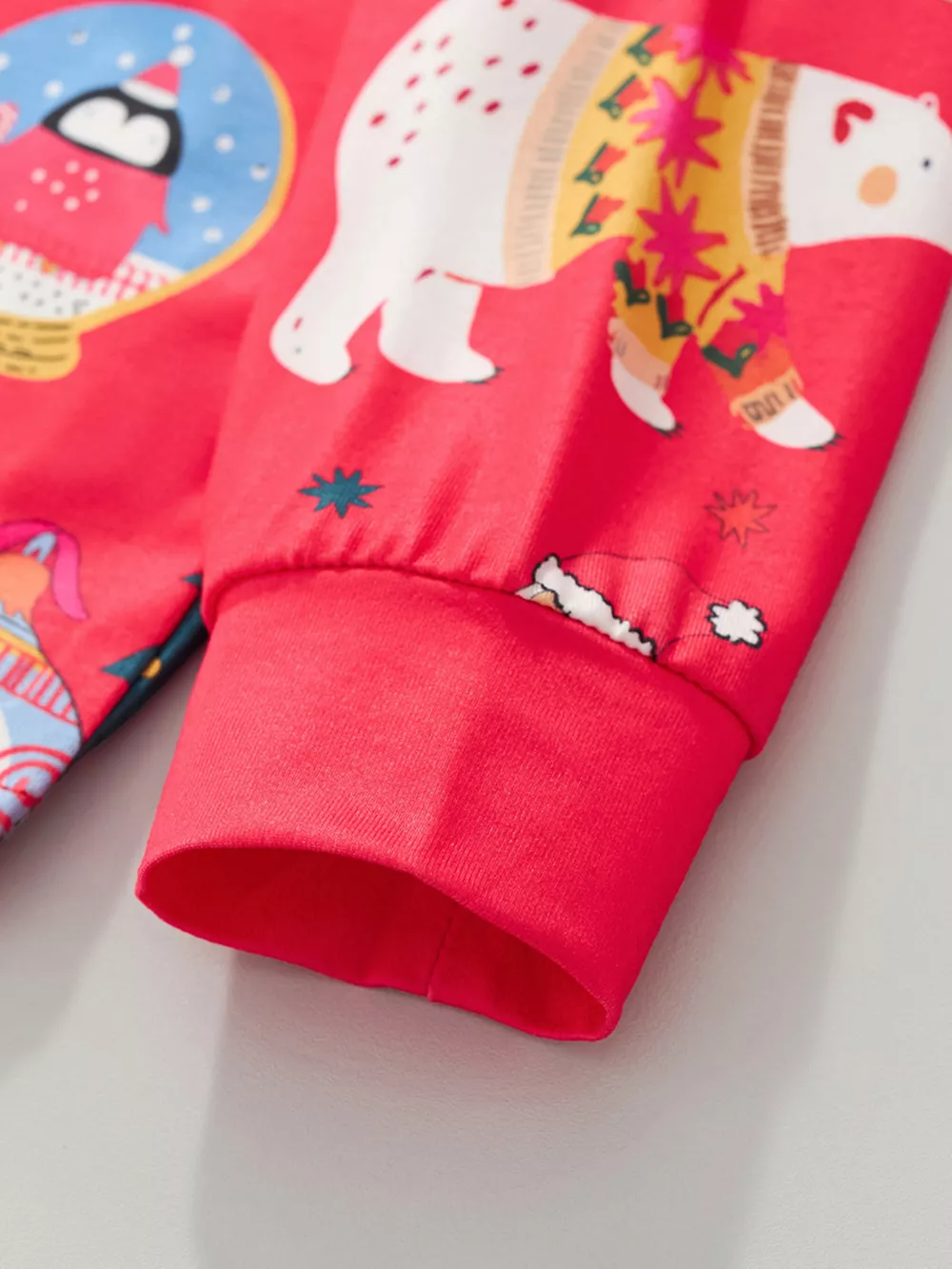 Children's Christmas Print Round Neck Top and Pants Pajama Set