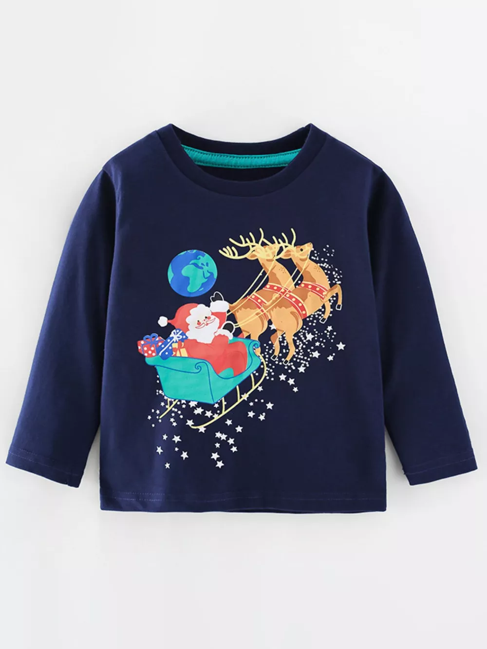 Children's Christmas Santa Sleigh Graphic Long Sleeve T-Shirt