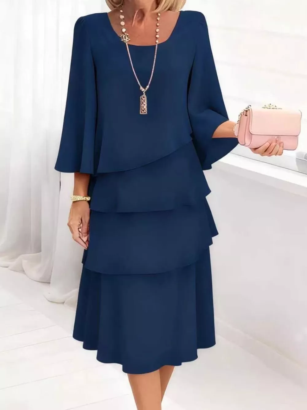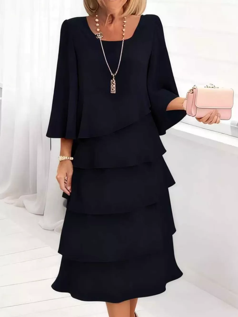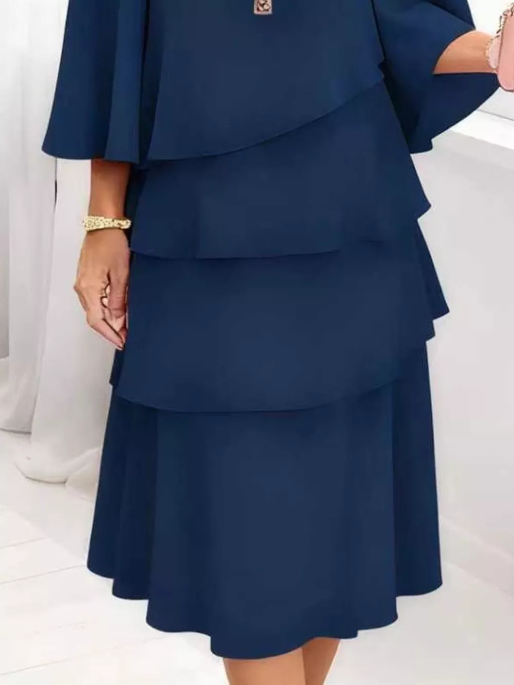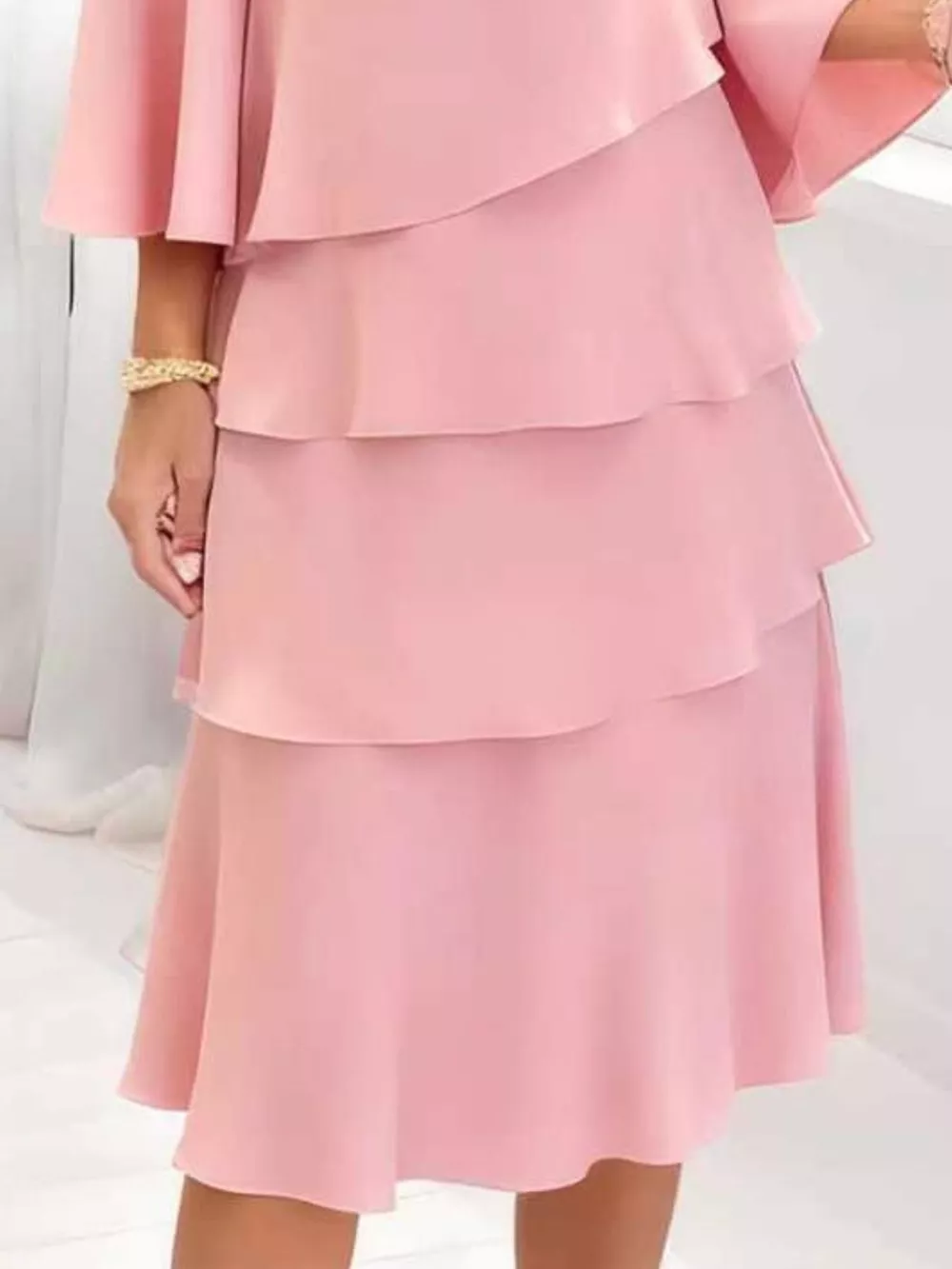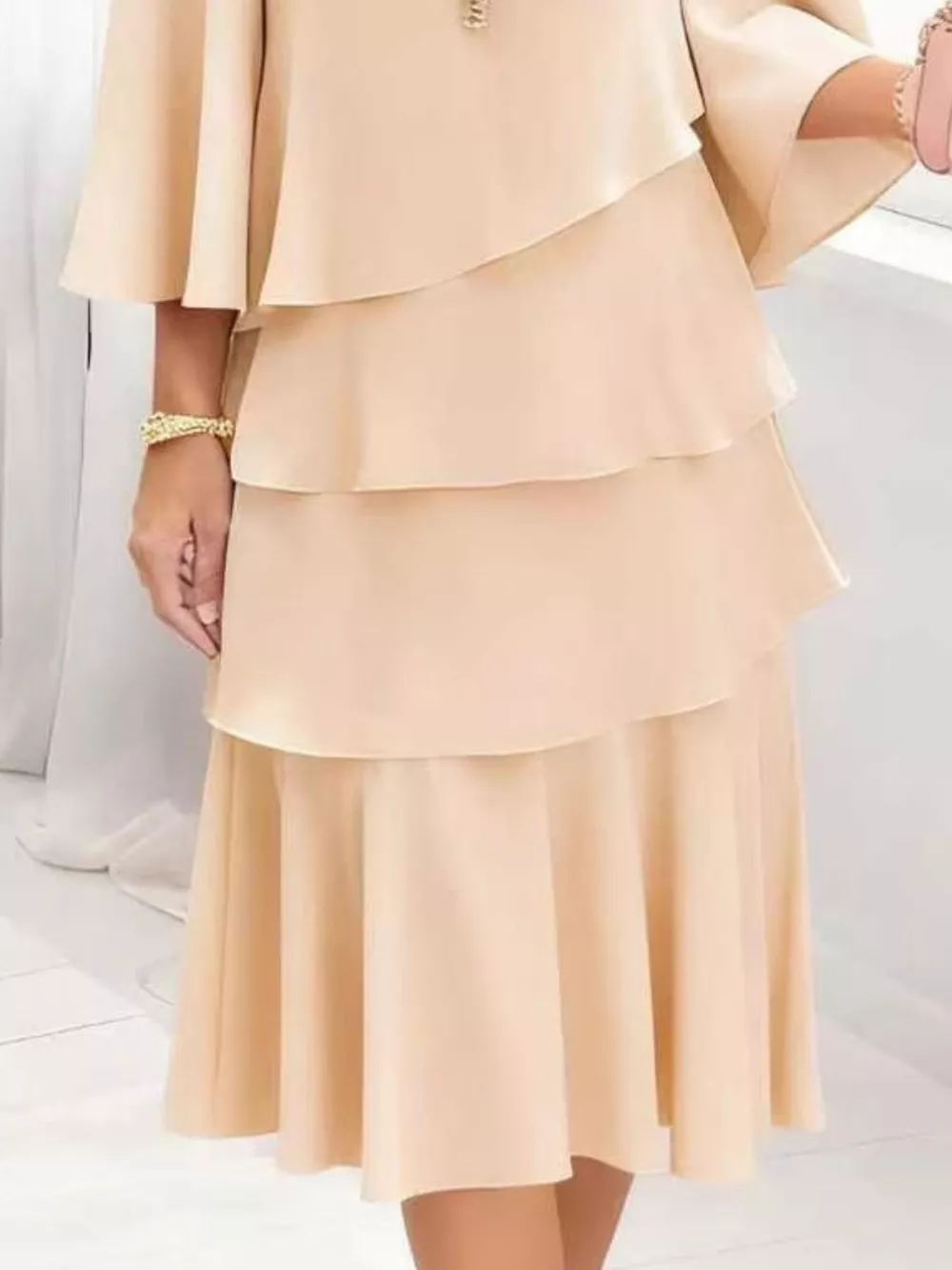 Full Size Ruffled Layered 3/4 Sleeve Dress Plus Size