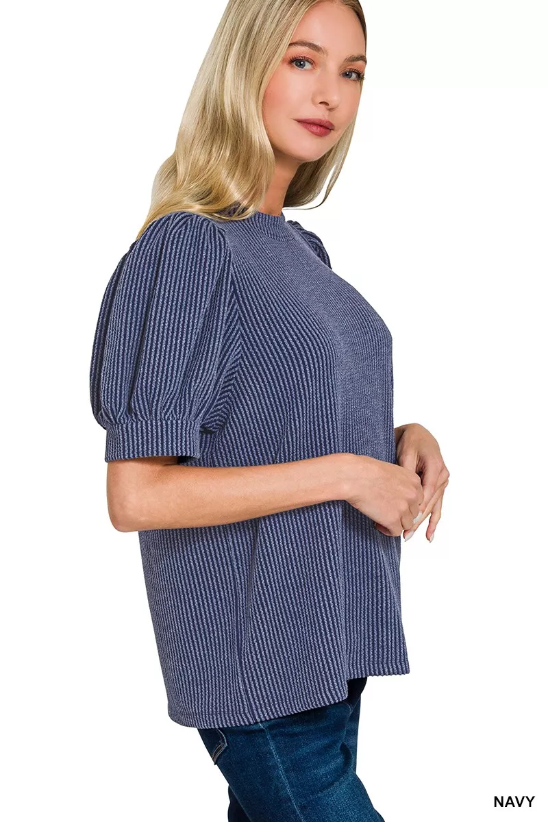Zenana Raised Rib Puff Sleeve Top