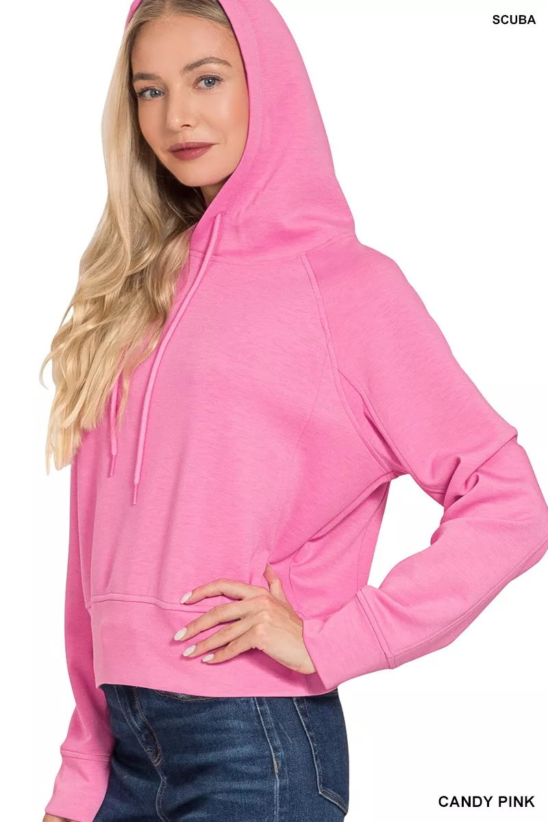 This Drawstring Scuba Hoodie is a trendy and practical addition to your wardrobe. The scuba material gives it a sleek and modern look. The drawstring detail allows you to adjust the fit to your liking. The hoodie provides both style and functionality for any casual outfit. Stay cozy and stylish in this versatile hoodie.