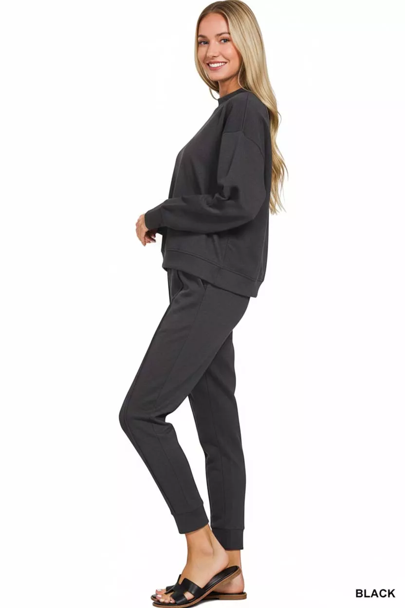 Zenana Scuba Mock Neck Sweatshirt and Joggers Set