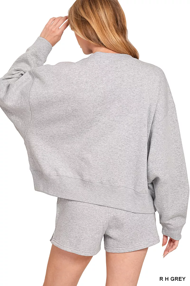 Zenana Fleece Round Neck Sweatshirt and Shorts Set