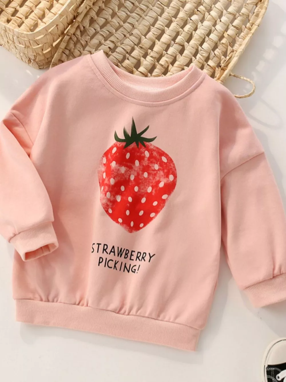 Children's Strawberry Picking Graphic Crew Neck Sweatshirt