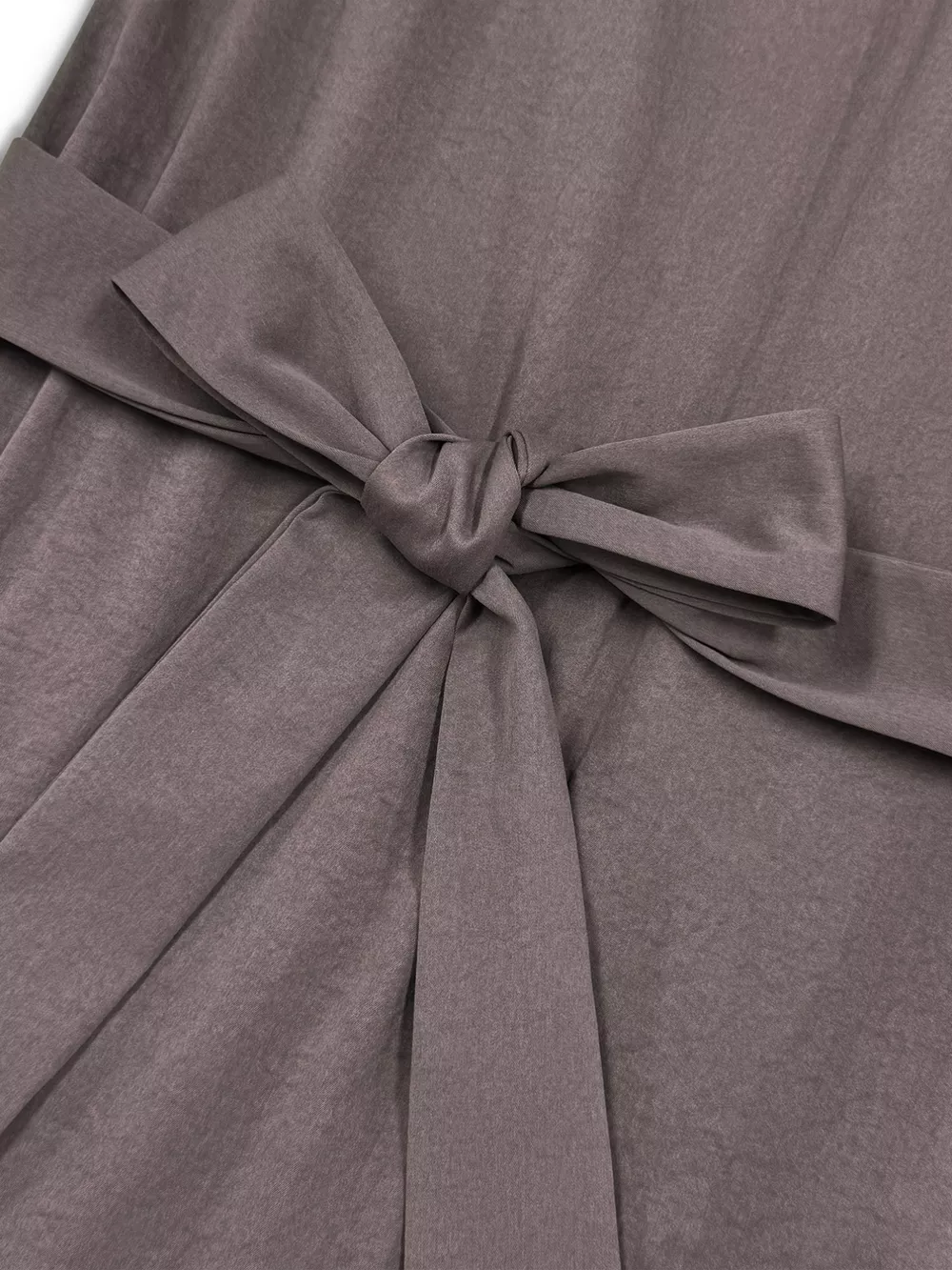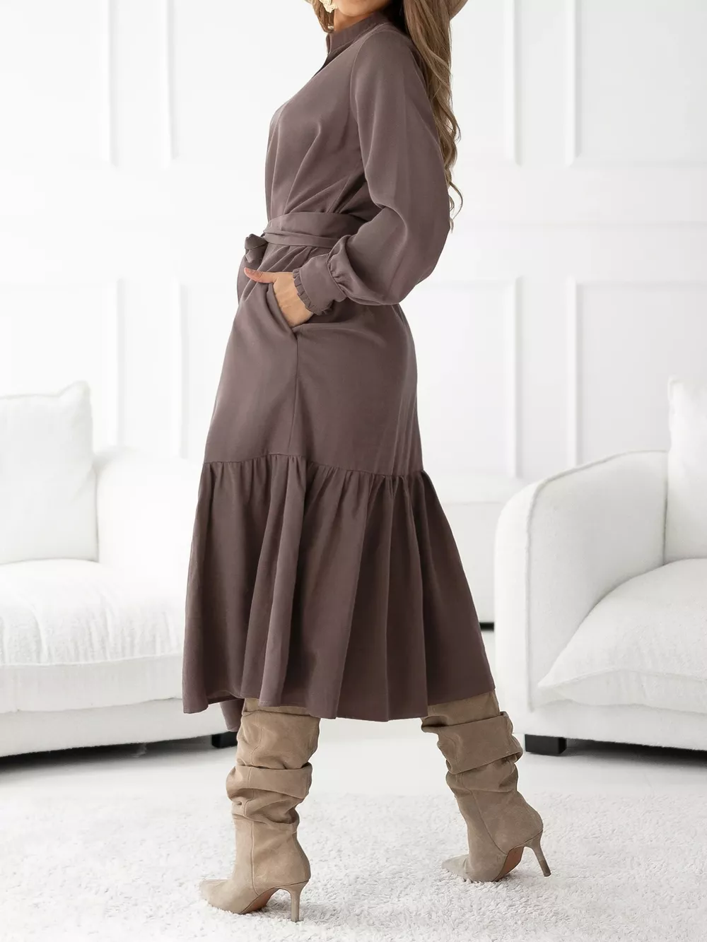 Long Sleeve Tie Waist Ruffle Hem Midi Dress