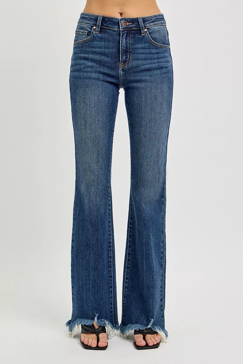 RISEN Full Size Mid Rise Flare Frayed Hem Jeans Plus Size