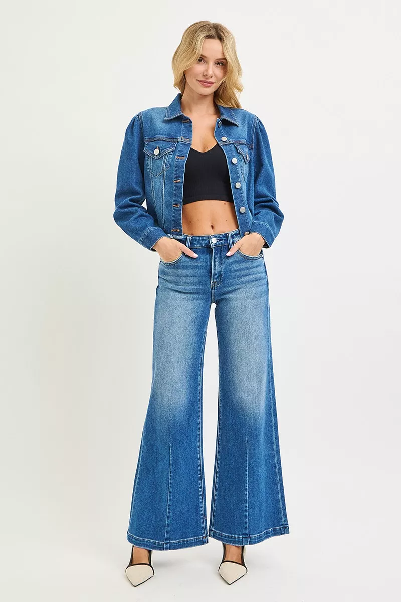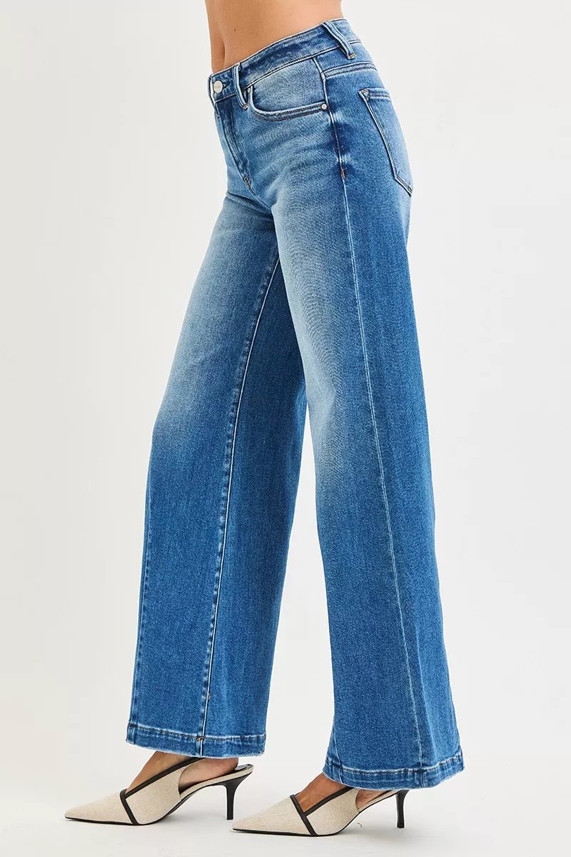 RISEN Full Size Mid Rise Wide Leg Jeans with Flared Look Plus Size