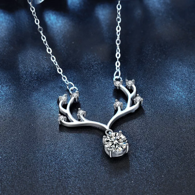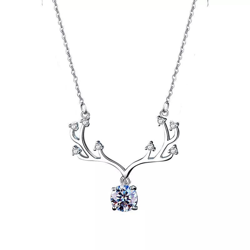 1 Carat Moissanite 925 Sterling Silver Deer Antler Pendant Necklace