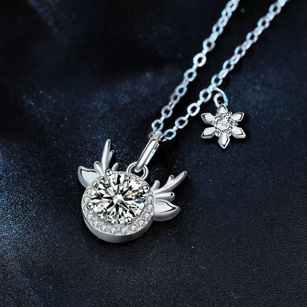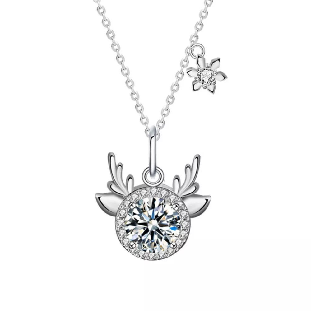 1 Carat Moissanite 925 Sterling Silver Deer Antler Pendant Necklace