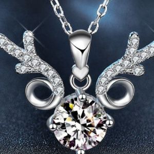 925 Sterling Silver Moissanite Deer Antler Pendant Necklace