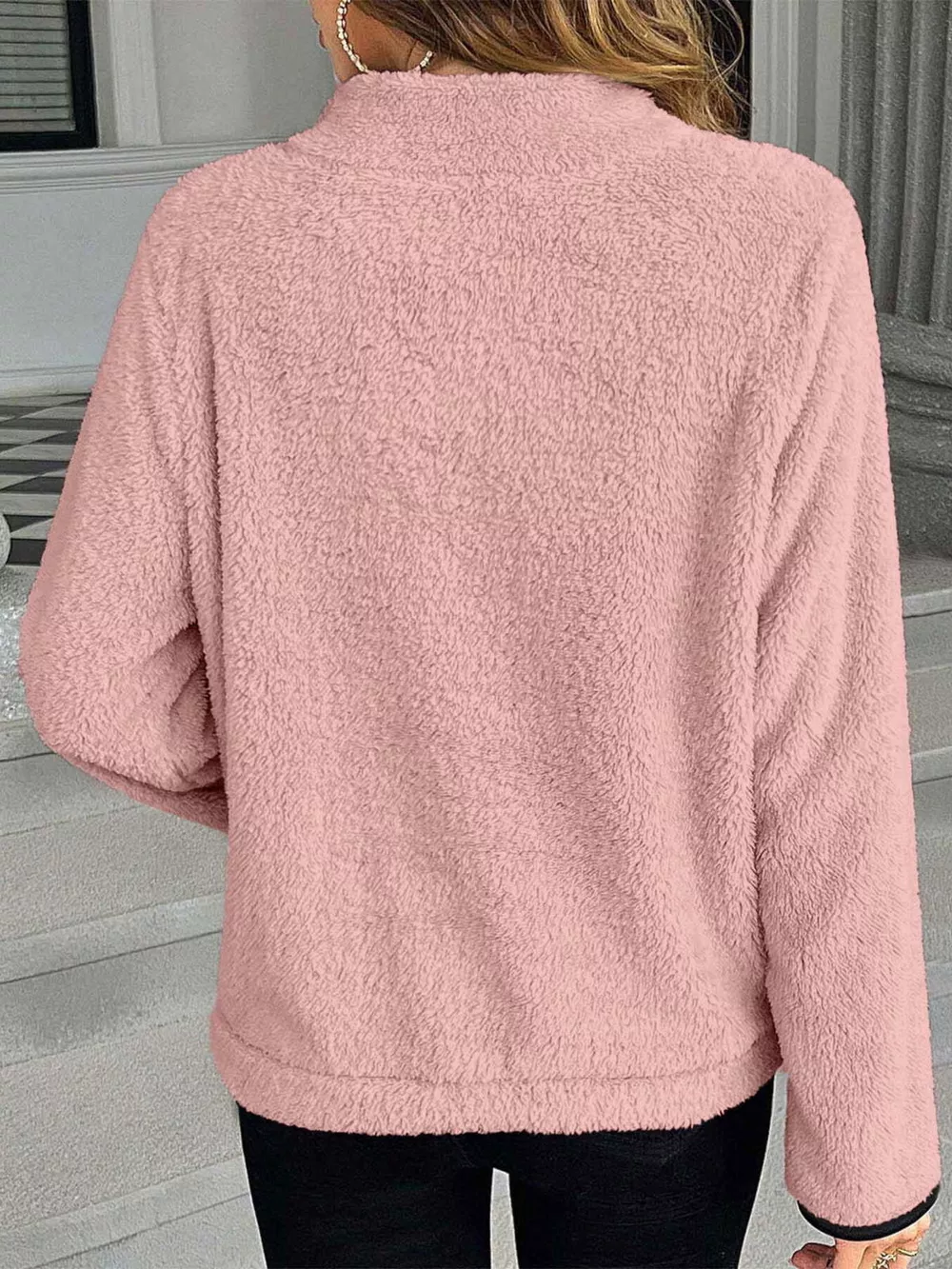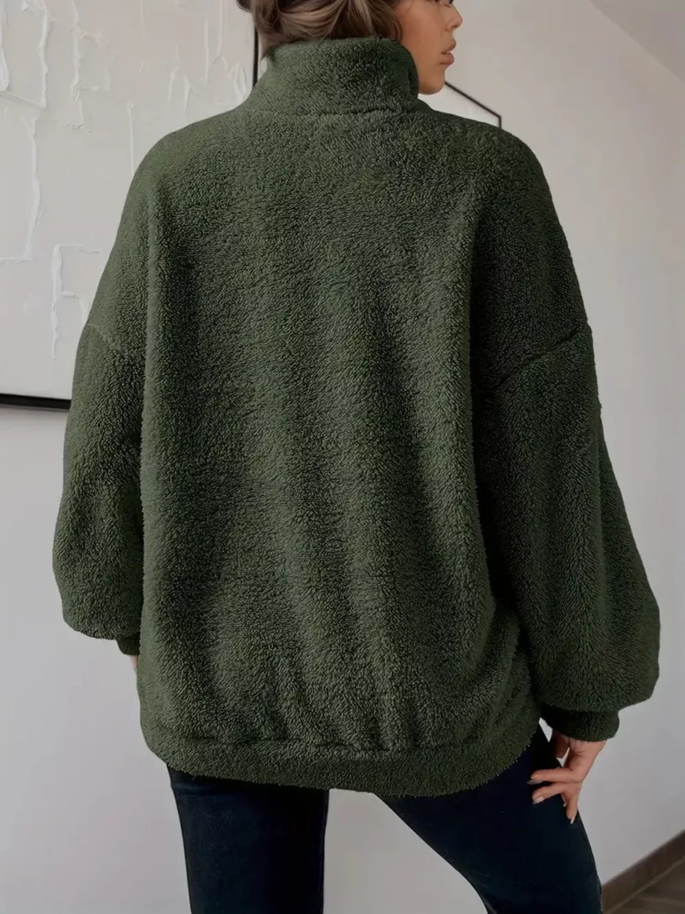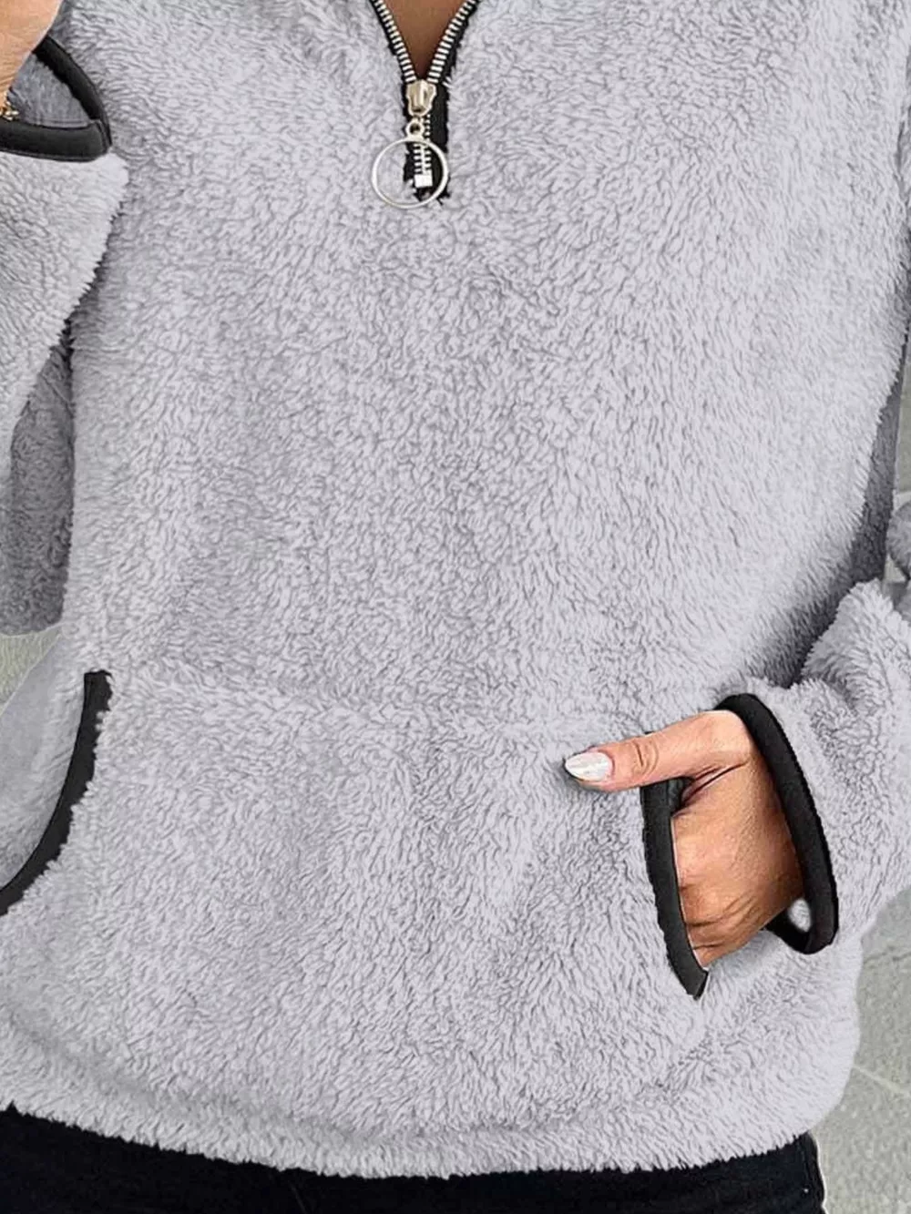 Plus Size Cozy Fleece Quarter Zip Sweatshirt with Pockets