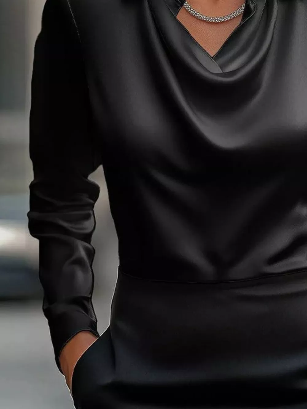 Full Size Satin Cowl Neck Long Sleeve Blouse Plus Size