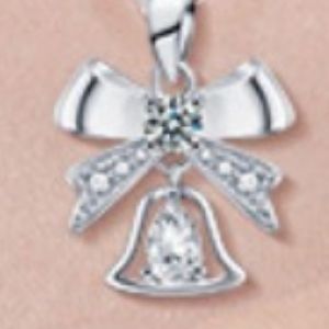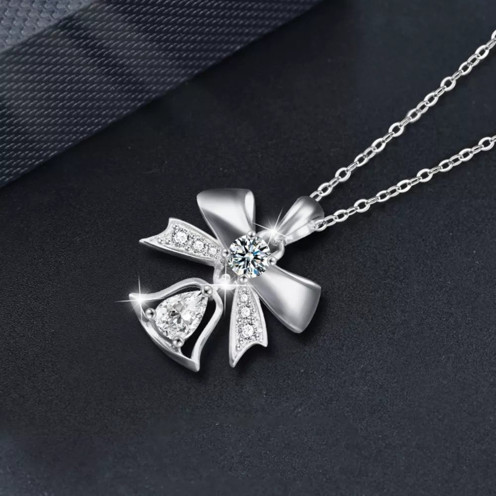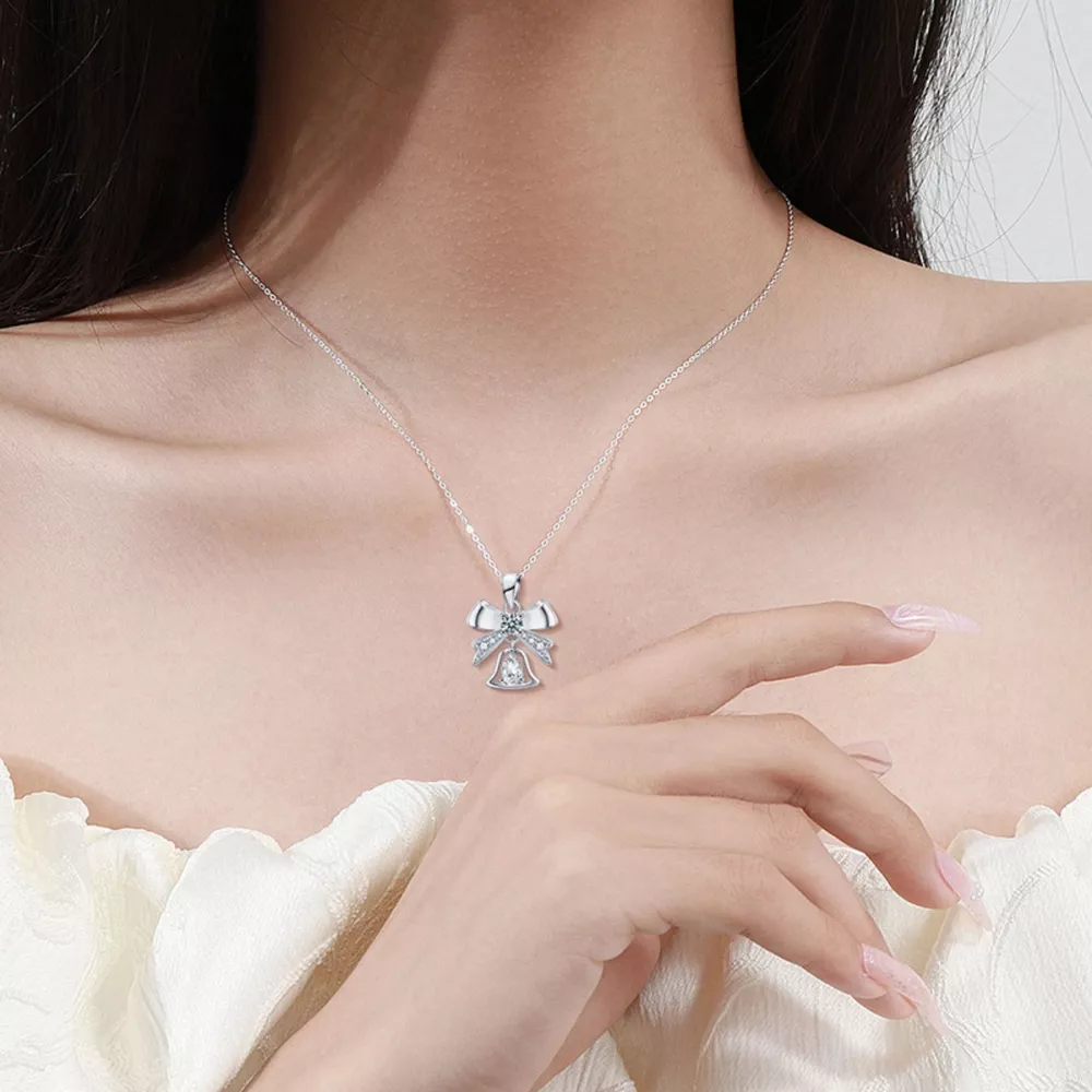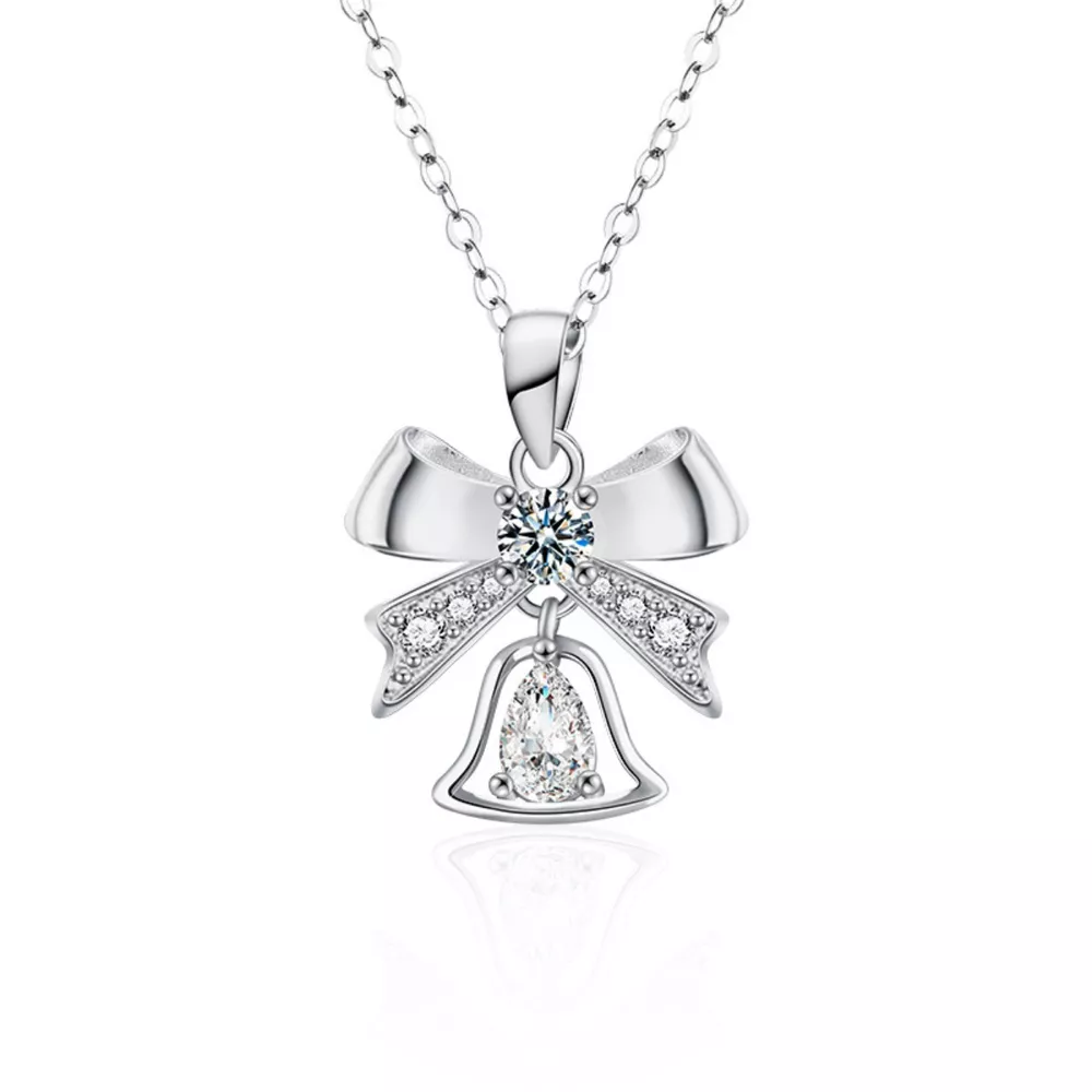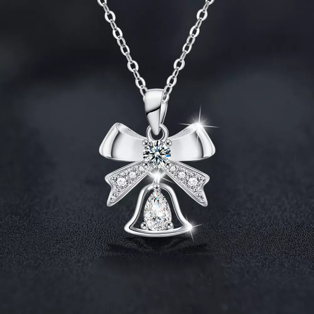 925 Sterling Silver Moissanite Bow Bell Pendant Necklace