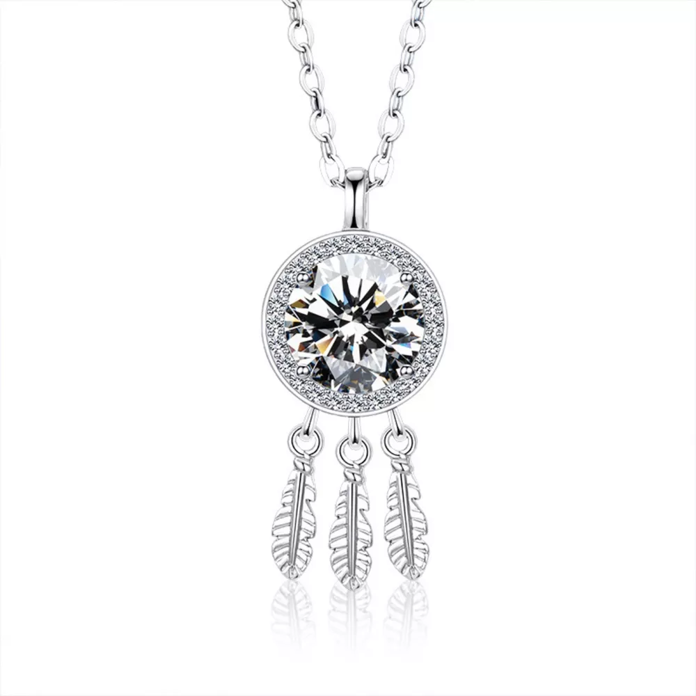 1 Carat Moissanite 925 Sterling Silver Dreamcatcher Pendant Necklace
