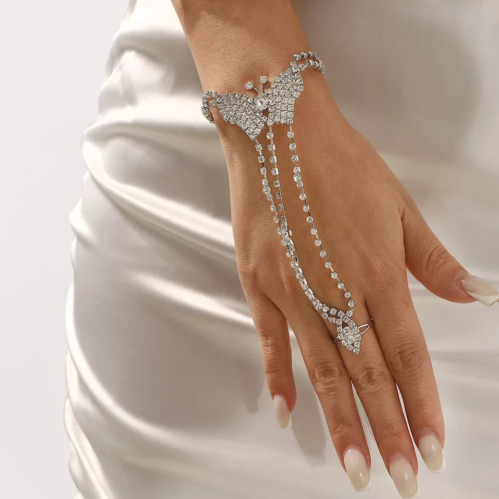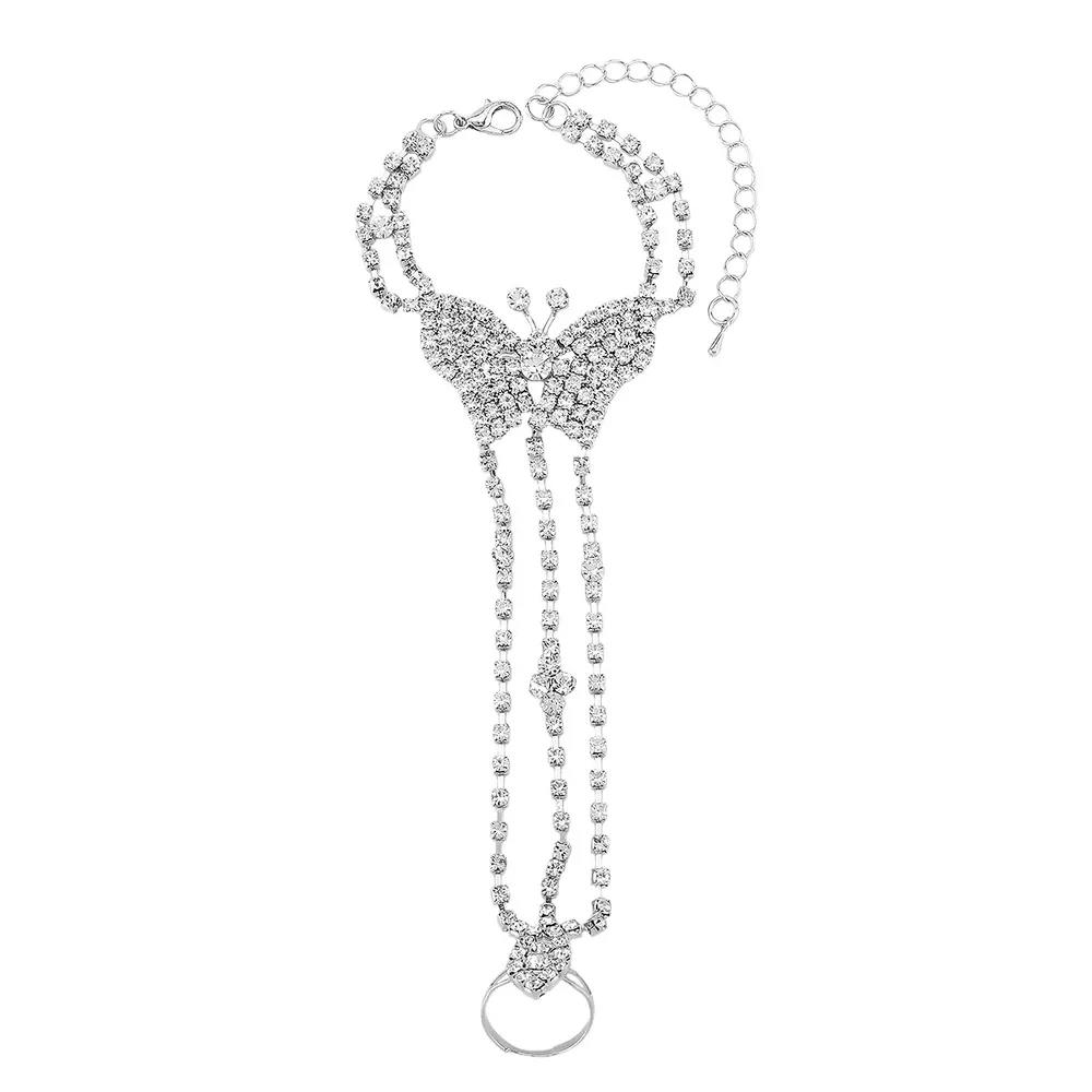 Rhinestone Butterfly Hand Chain Bracelet