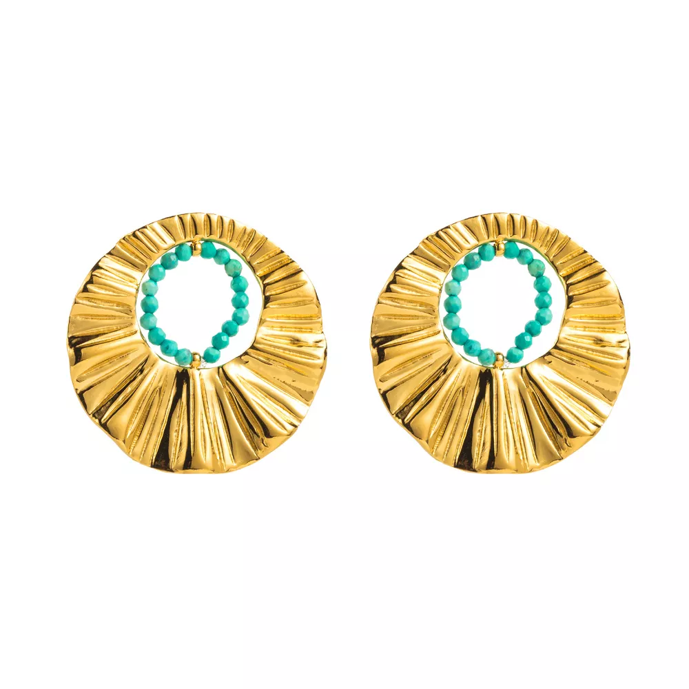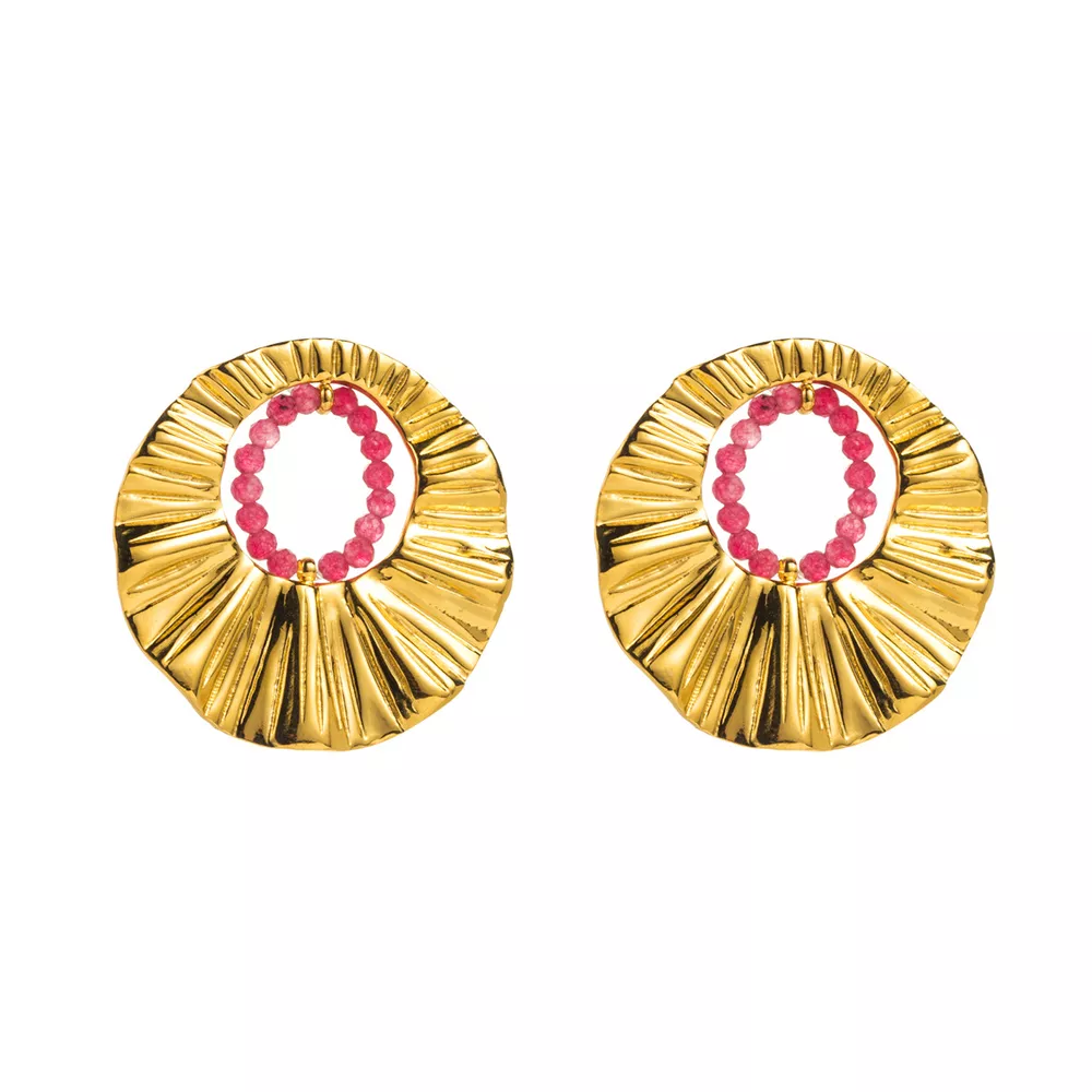 18K Gold-Plated Bead Round Earrings