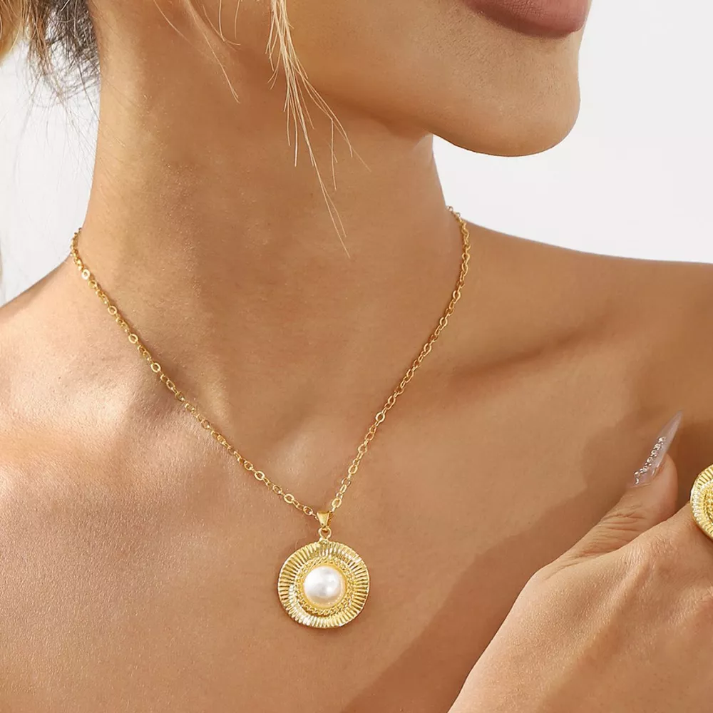 Alloy Pearl Pendant Necklace