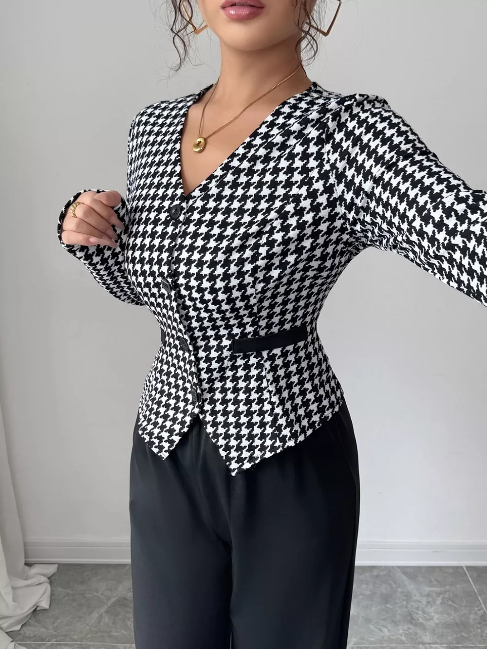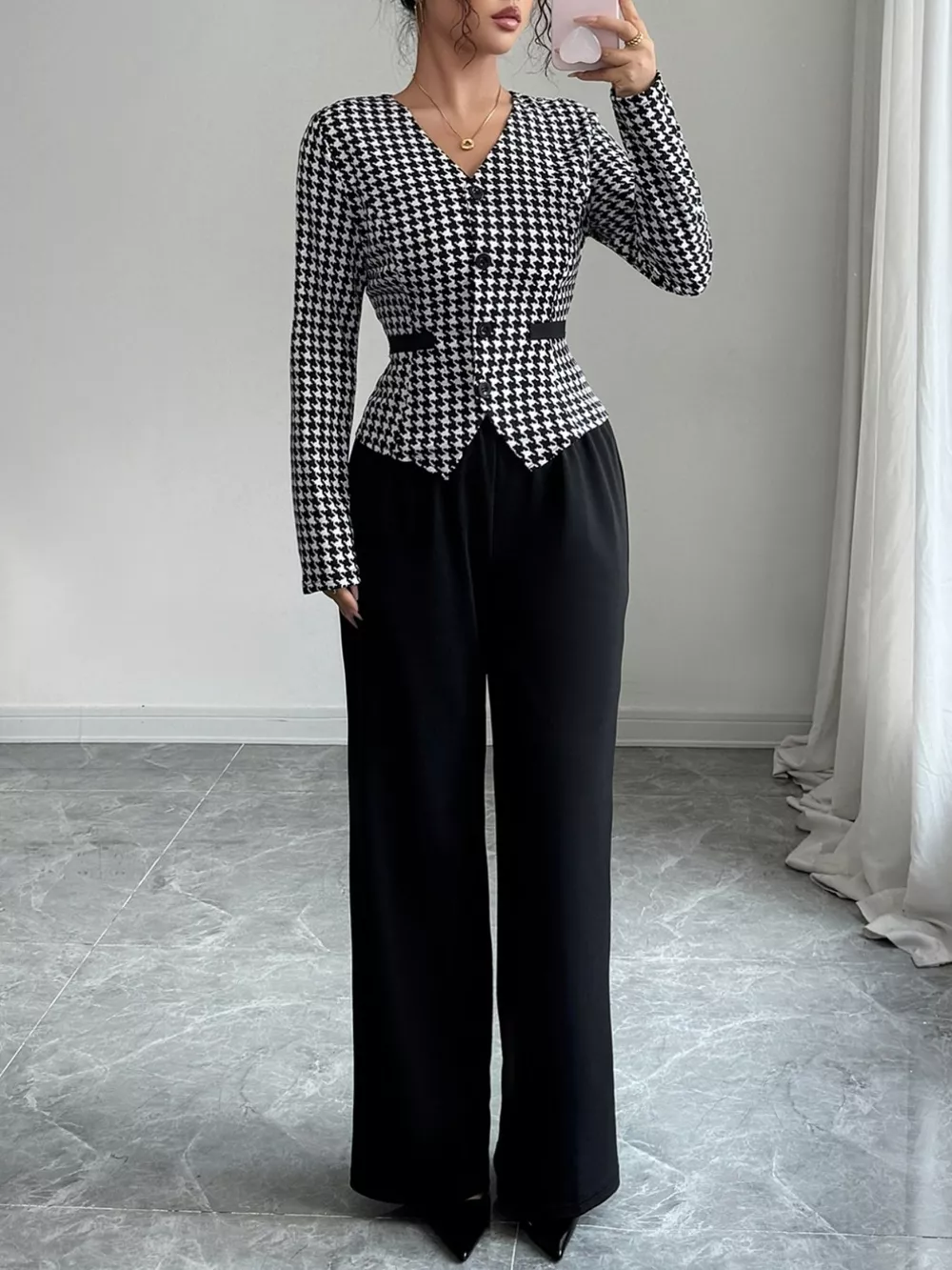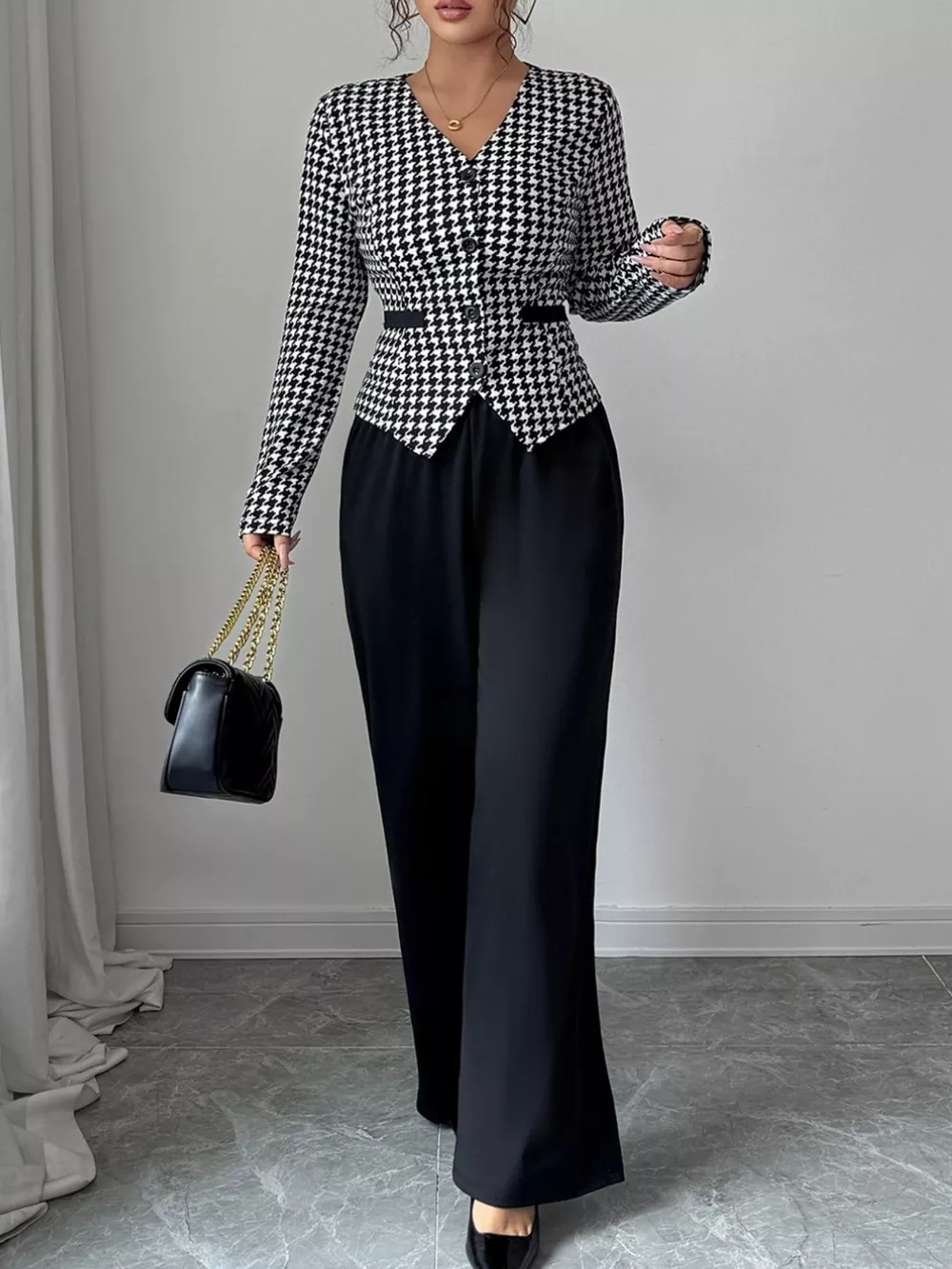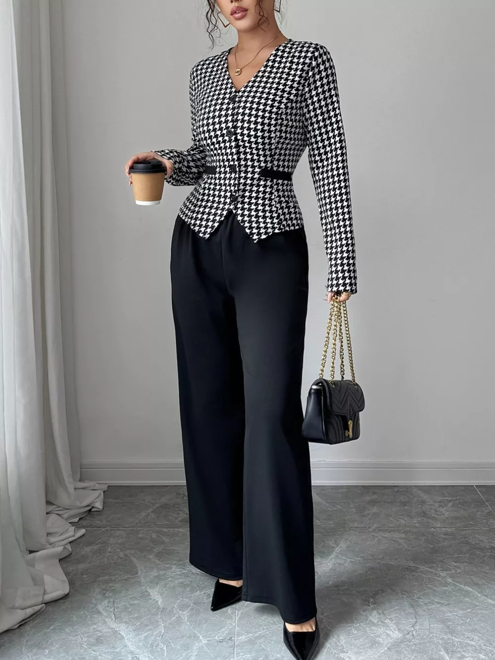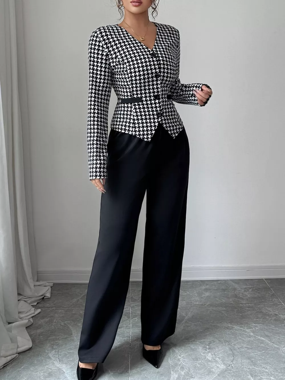 Houndstooth Blazer & Wide Leg Pants Set