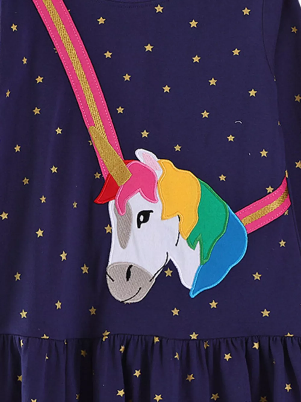 Children's Embroidered Unicorn Long Sleeve Dress
