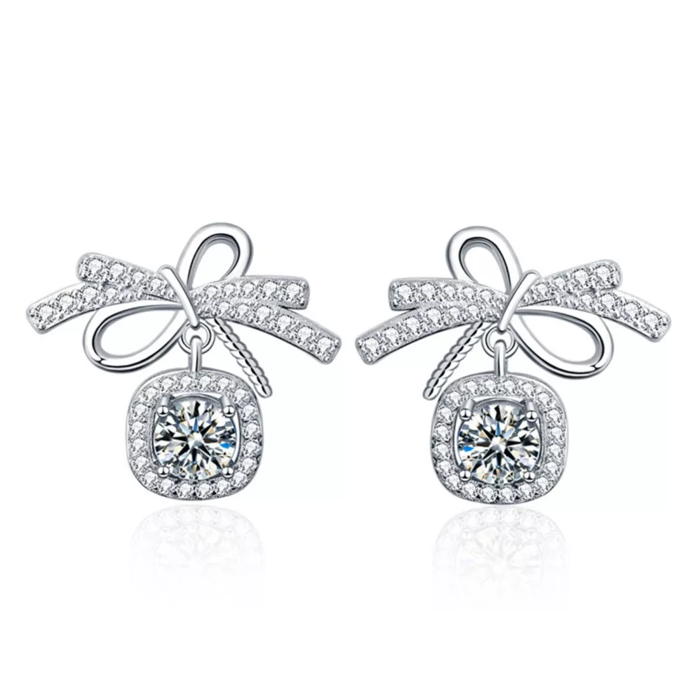 925 Sterling Silver Moissanite Bowknot Drop Earrings