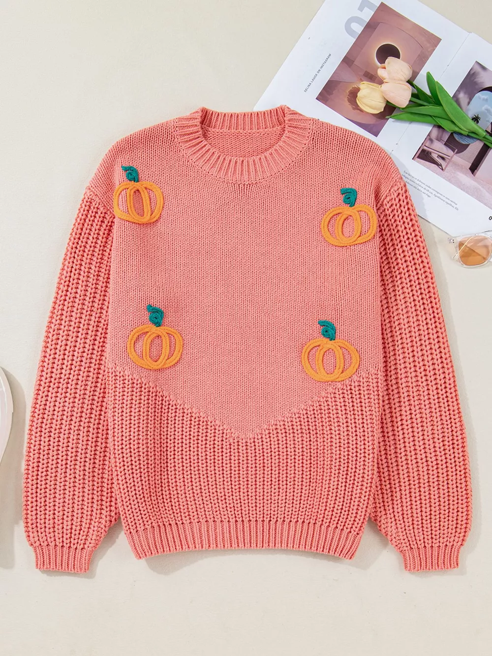 Pumpkin Embroidered Thanksgiving Holiday Sweater