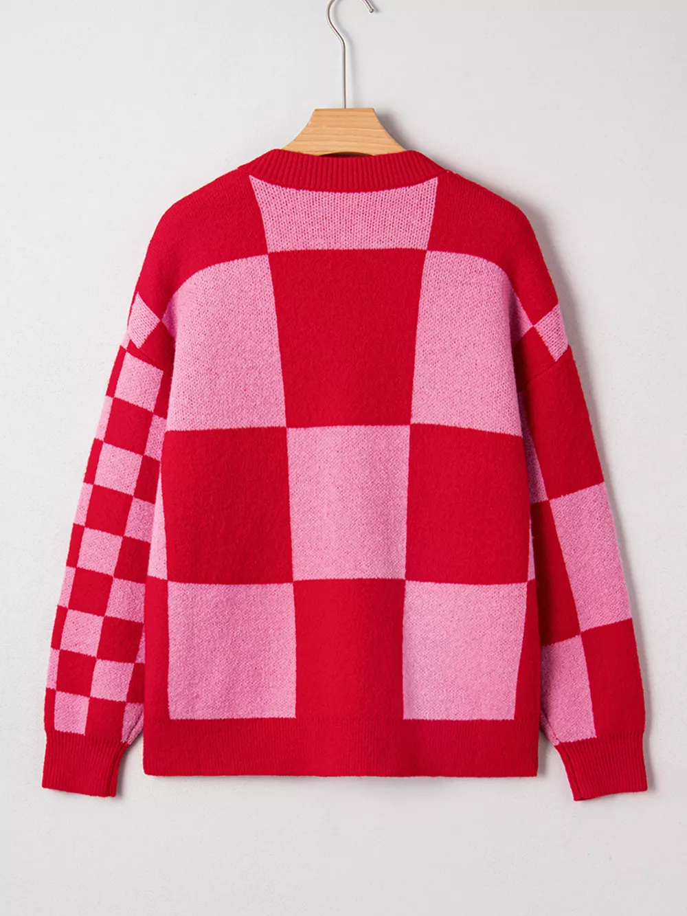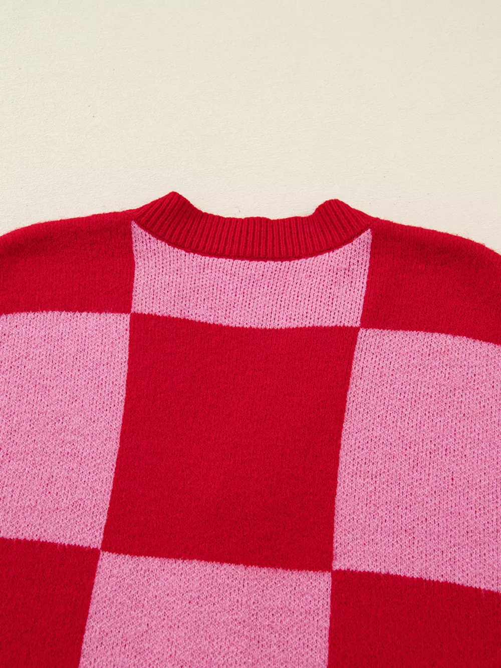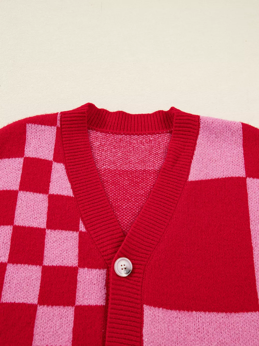 Checkerboard Knit Button-Down Cardigan