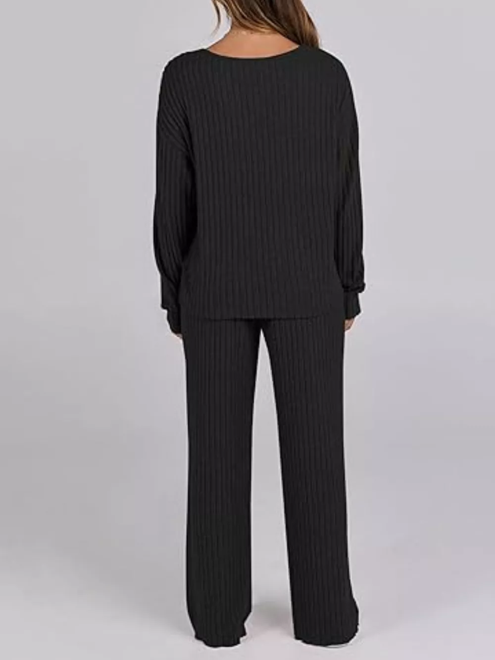 Relaxed Fit Ribbed Knit Top and Pants Set