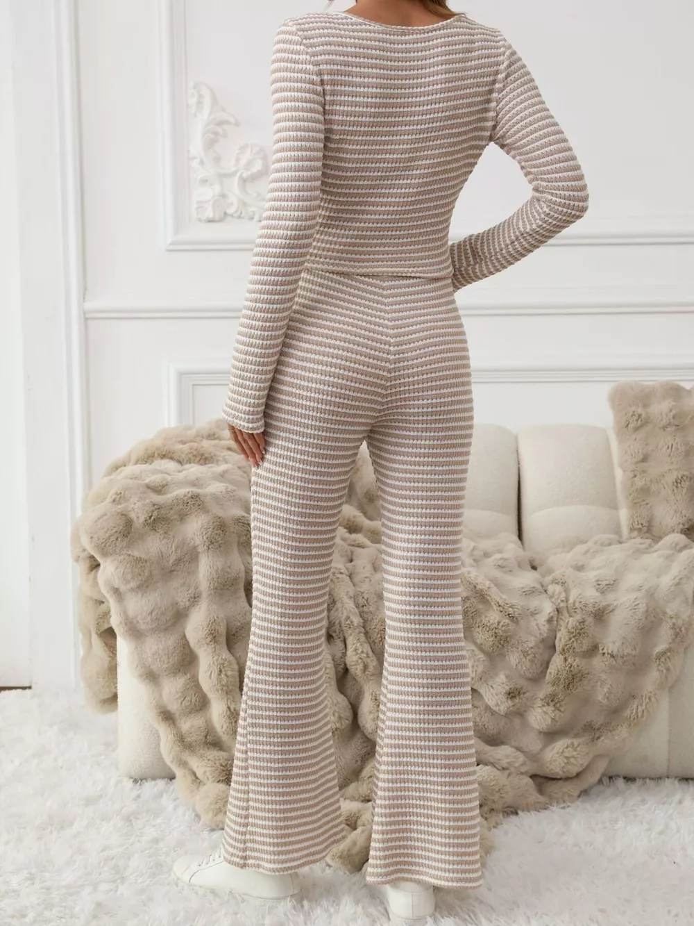 Striped Knit Long Sleeve Top & Flare Leg Pants Set
