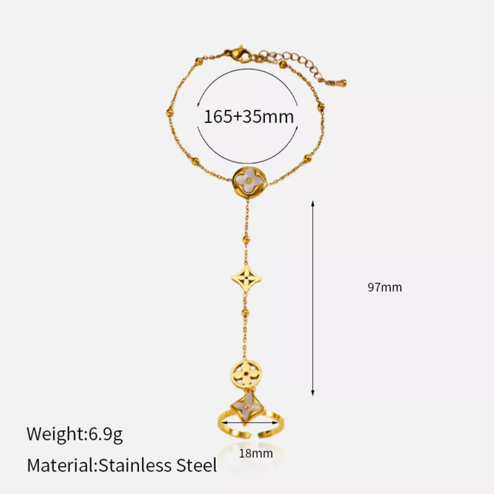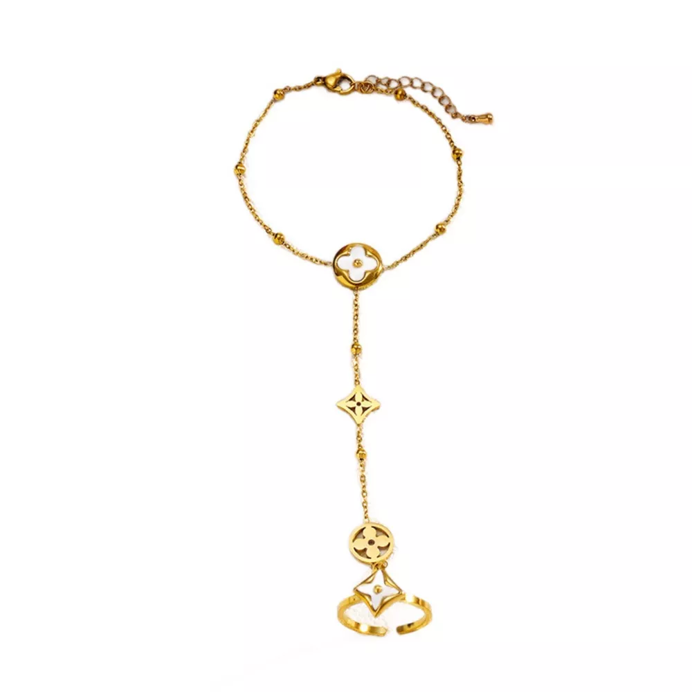 18K Gold-Plated Clover Charm Hand Chain Bracelet