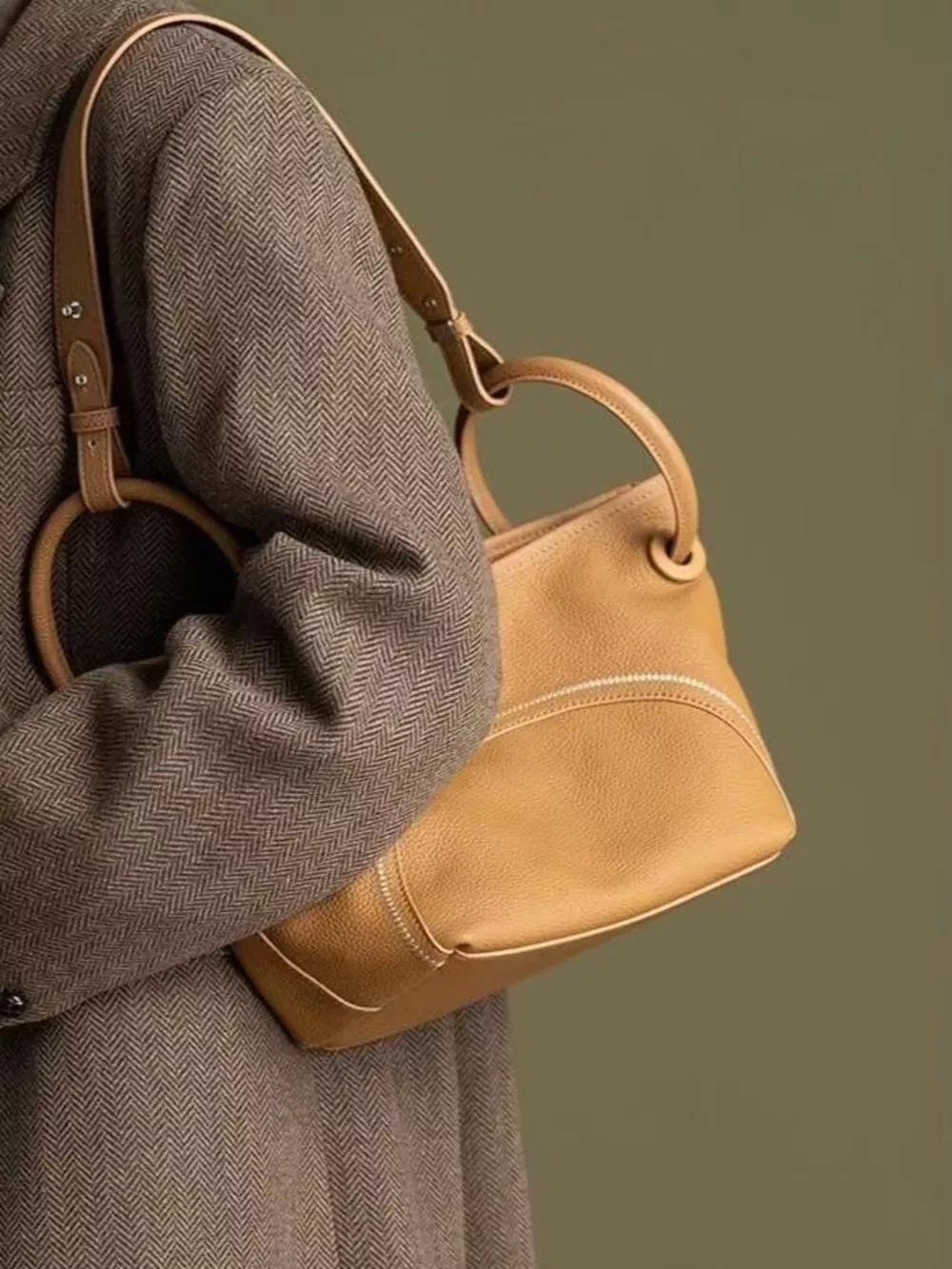 Leather Round Handle Tote Bag
